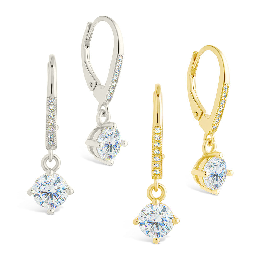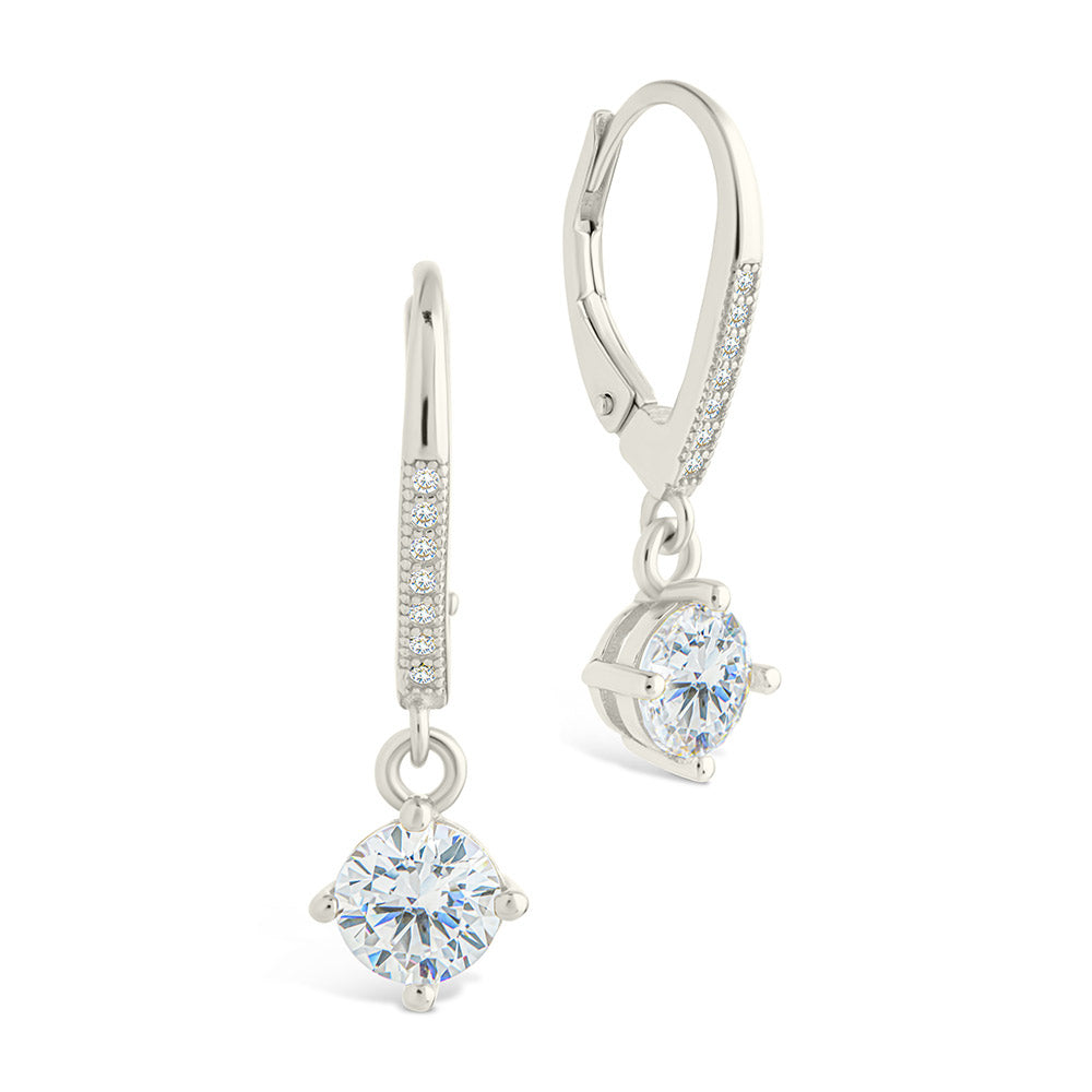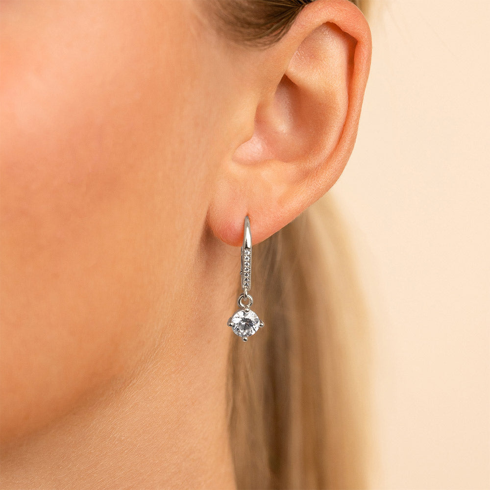 Set with brilliant cut, Hearts & Arrows CZ stones, these sterling silver earrings offer a refined, geometric drop. The French clip backing ensures a smooth, secure fit for all-day wear.