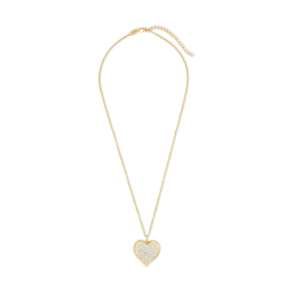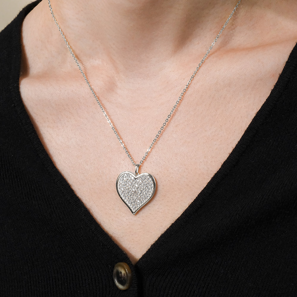 The Sterling Silver Small Heart Pendant Statement Necklace is all charm, no effort. Covered in tiny pavé CZ stones and finished with a sleek bezel edge, it’s playful, a little bold, and ready to be your everyday favorite.