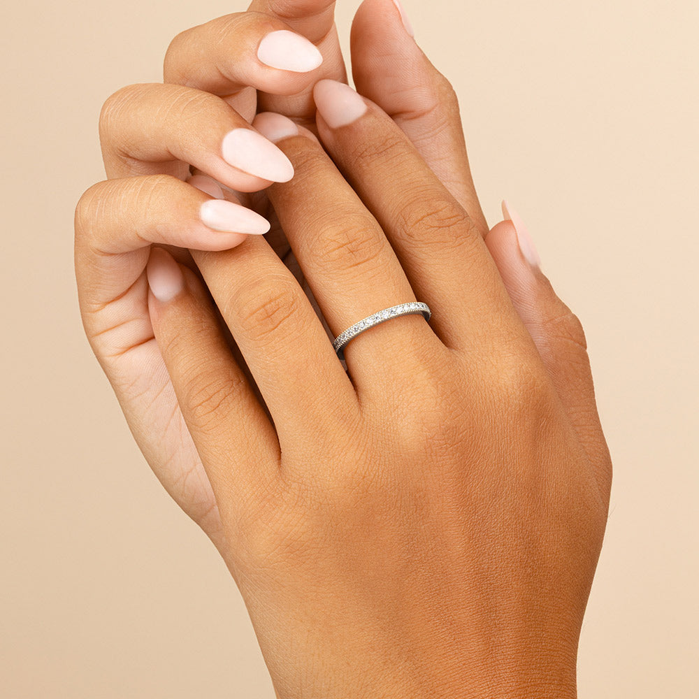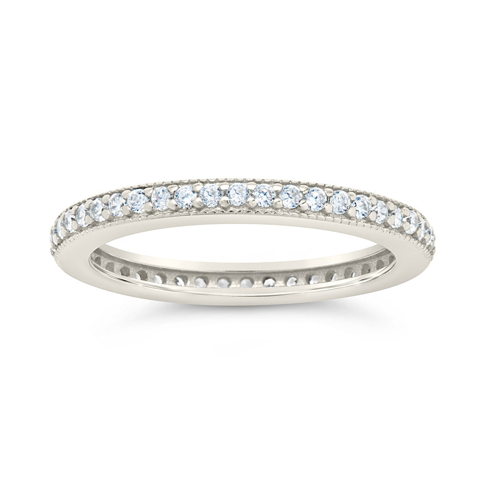 Thin Sterling Silver CZ Band Ring