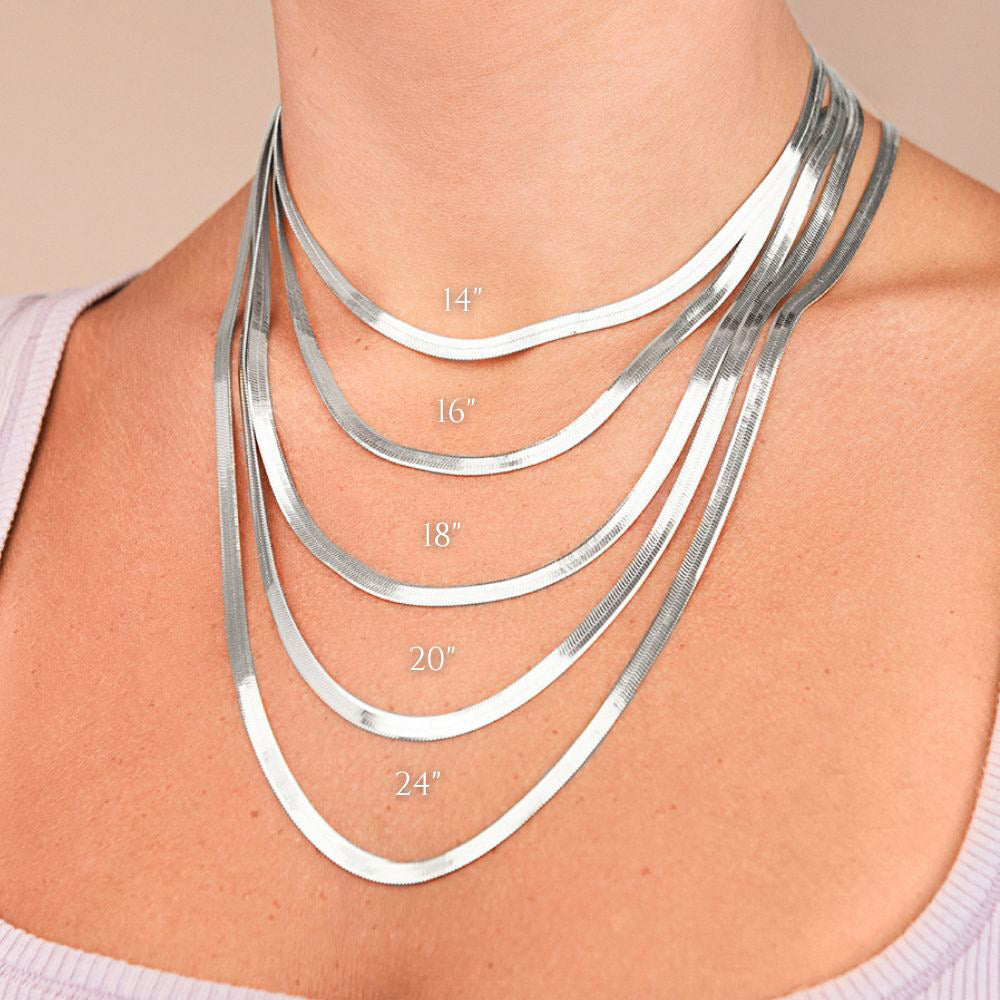 Simple, sleek, and endlessly wearable. The Thick Sterling Silver Herringbone Chain Necklace is the kind of piece that fits every moment—casual days, dressed-up nights, and everything in between.