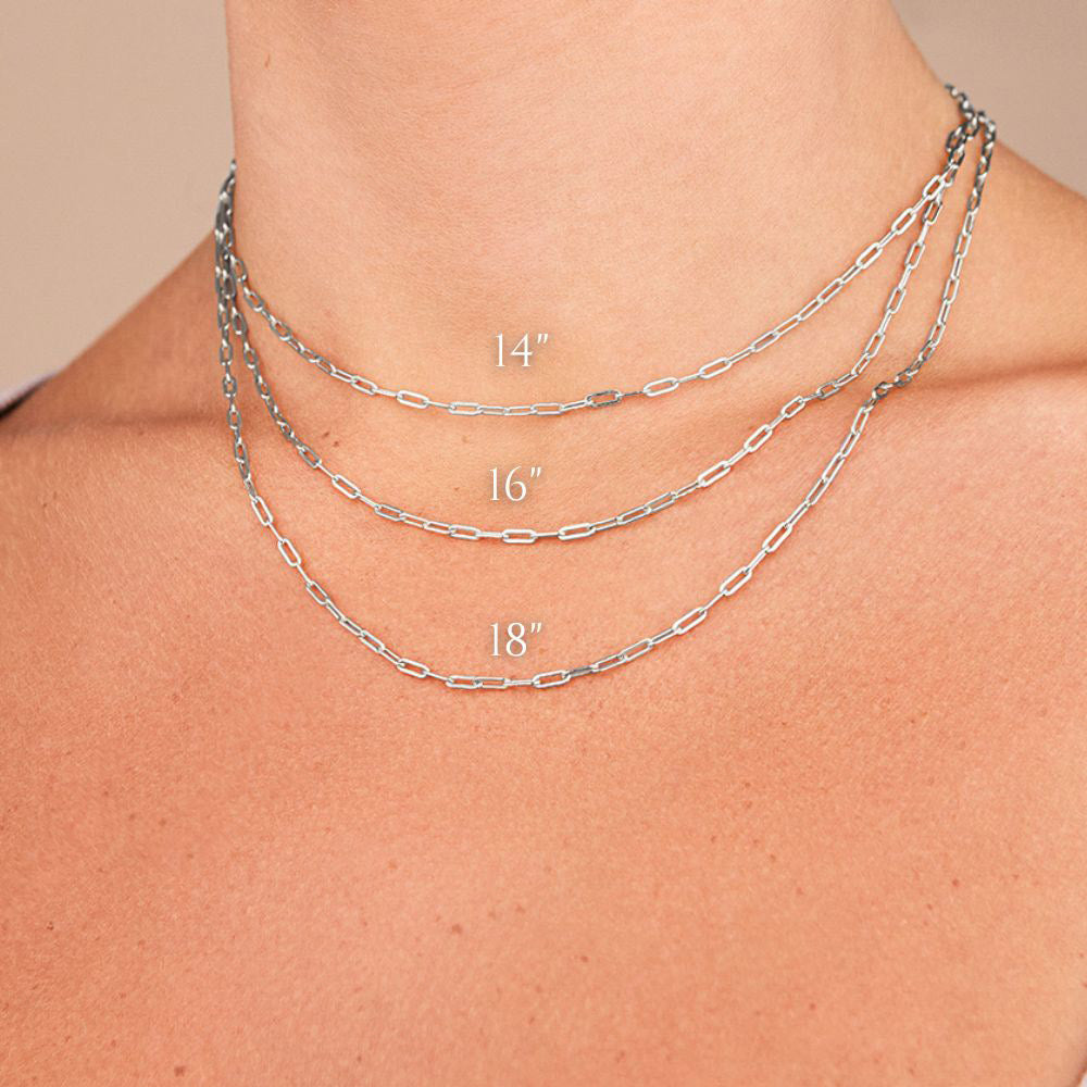 This Thin Sterling Silver Paperclip Chain Necklace is the kind of piece you’re sure to wear every day. Its sleek links make it easy to style. Wear it solo for a simple look, or layer it up with your favorite chains and pendants.