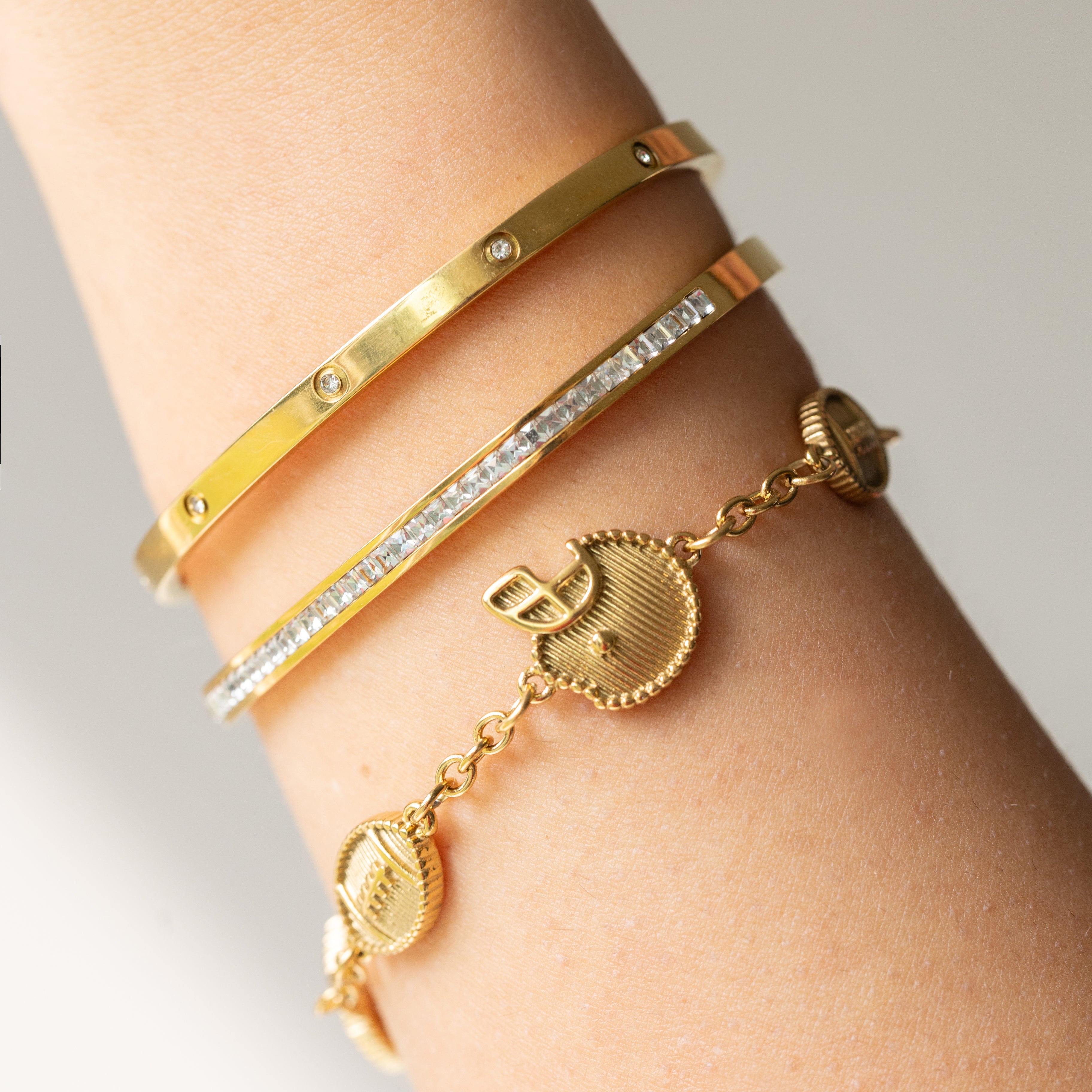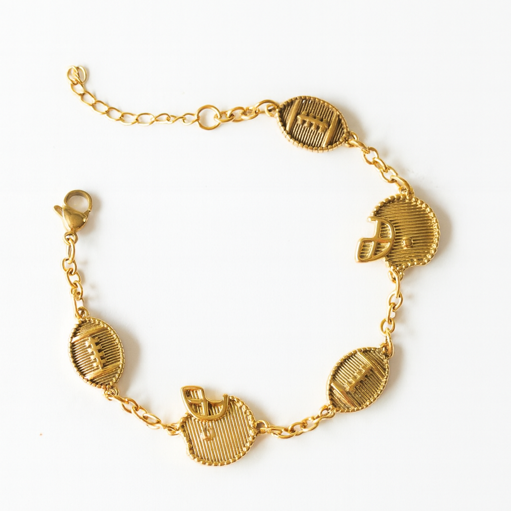 A touchdown for your style! Score big with this Football Fever Bracelet Stack—the ideal blend of sporty flair and delicate style. Crafted with gleaming gold and a standout football charms, this piece adds a touch of class to game day and beyond. Whether you’re cheering from the stands or showing off your team pride every day, it’s the ultimate accessory for fans who love to shine.