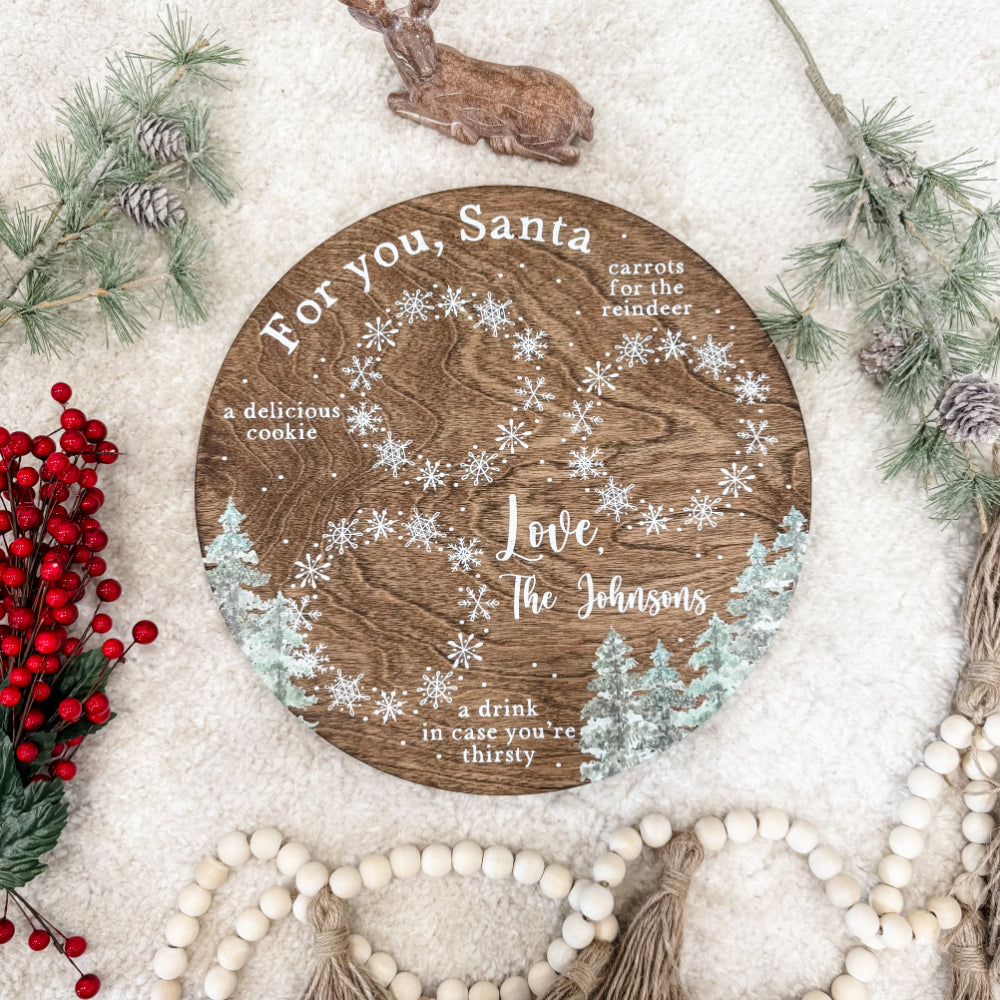 Make Christmas Eve extra-magical with this personalized Santa tray. Designed to hold treats for Santa and his reindeer, this tray is custom-printed with your child’s name or family name for a special touch. A festive keepsake that creates cherished holiday memories year after year.