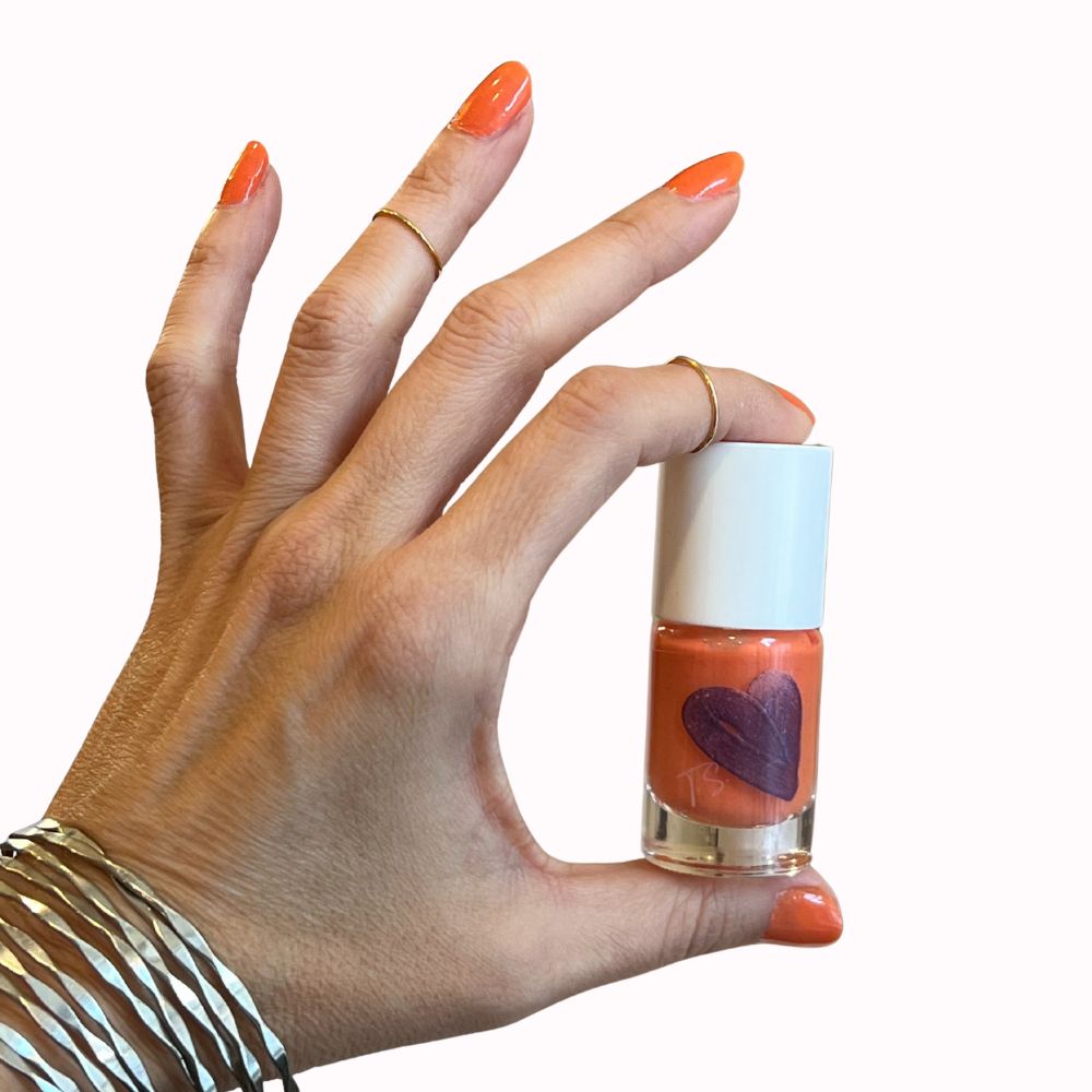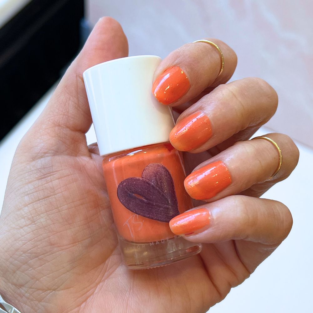 Orange Sparkle: Vibrant, cheery orange bursting with understated glitter that feels optimistic and energetic