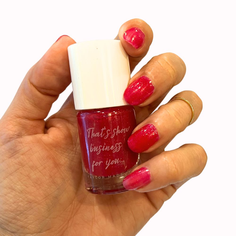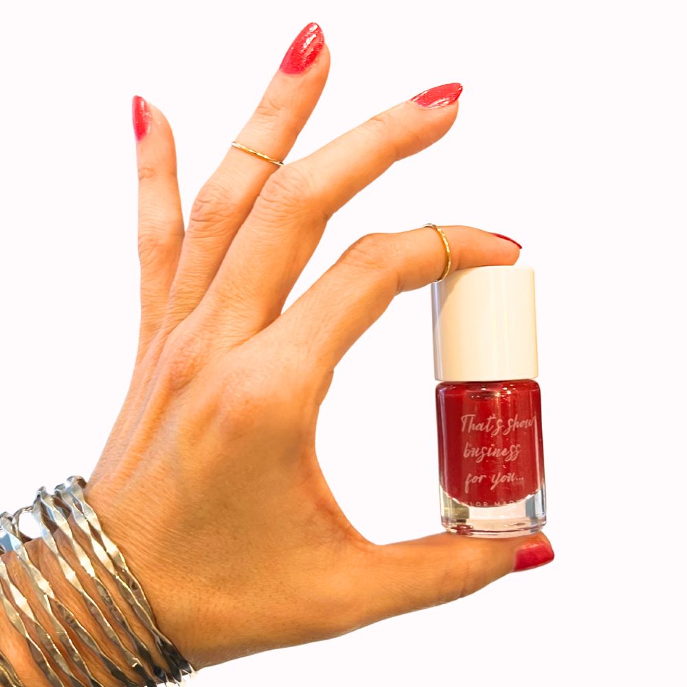 Nails of a Showgirl is a glitter-inspired, non-toxic nail polish collection that channels the magic, drama, and bold color of the big stage’s most dazzling performances. Each shade is a standing ovation to the artistry of theater, sparkle of center stage, and storytelling power of music. Whether you’re chasing curtain calls or simply want everyday glamour, this polish lets your nails take a star turn with no ticket required.