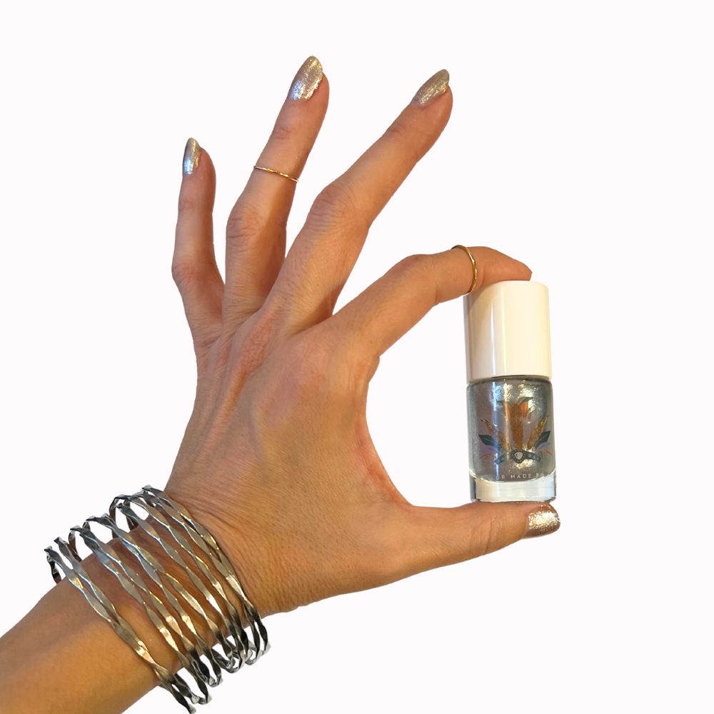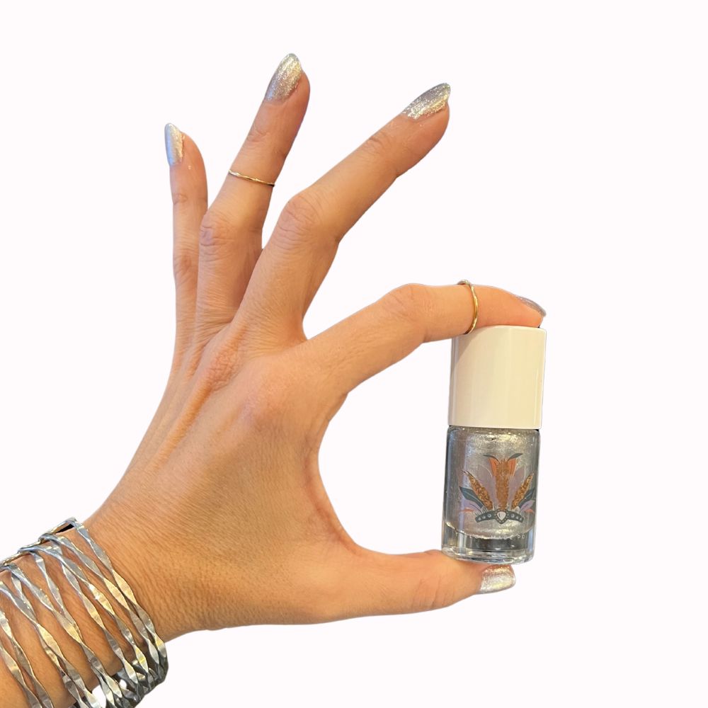 Silver: Show-stopping silver inspired by the glimmer of marquees. Ultra-reflective, glamorous, and guaranteed to steal the scene. With a single coat, this can be worn as a shimmer top coat, or achieve full coverage with 2–3 coats