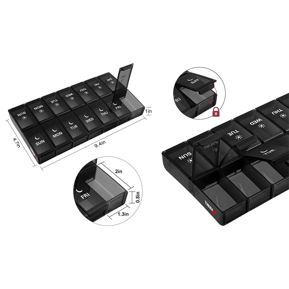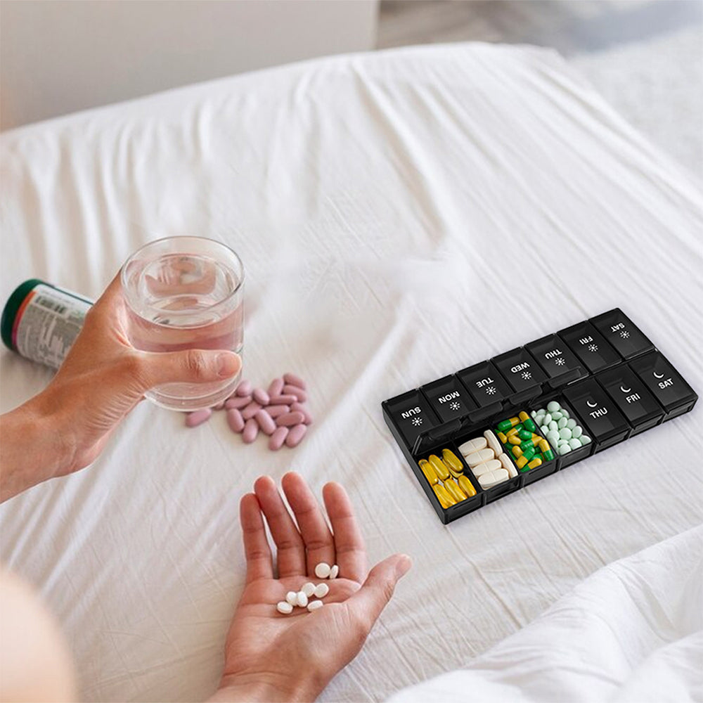 • AM/PM compartments help you easily plan and distribute your daily doses
