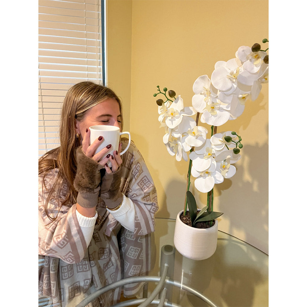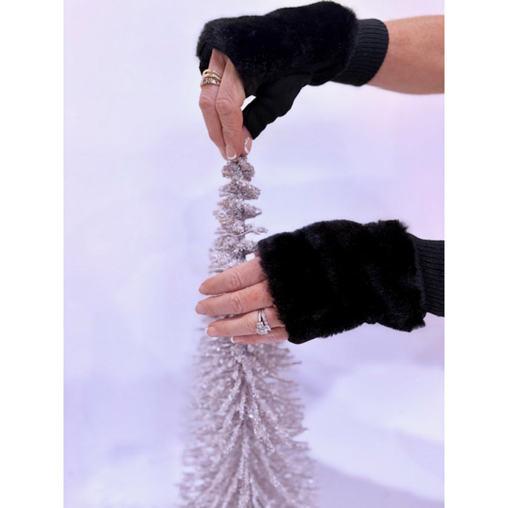 Stay cozy and stylish with the Blythe Gloves! These plush faux fur fingerless gloves are ideal for chilly mornings, keeping your hands warm while leaving your fingers free for texting, driving, or coffee runs. The ribbed cuffs add a touch of glamour and a snug fit, making them great for fall and winter. Available in chic colors to complement every outfit.