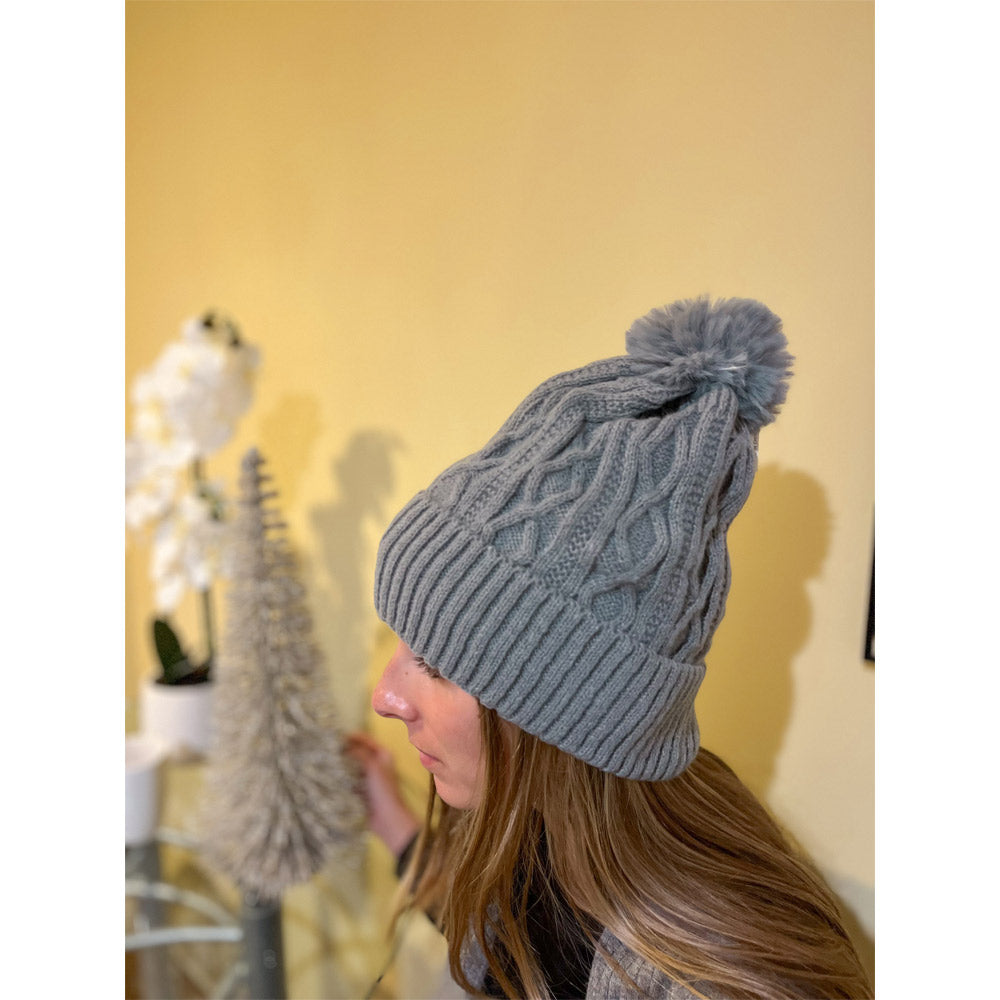 Stay warm and stylish all winter with the Darcy Hat! This cozy cable-knit beanie is fully lined with soft fleece to keep you toasty on even the coldest days. Classic in style and ultra-comfortable, it’s the ideal addition to your winter wardrobe. Pair it with a sweater, a scarf, and gloves for a complete cold weather look that blends warmth and timeless charm.