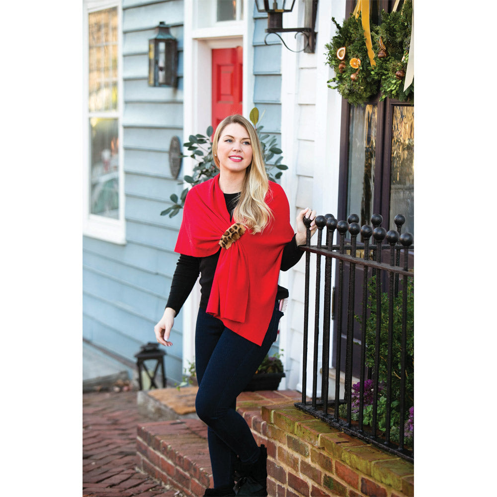 Turn heads with the Katie Wrap—featuring a fun leopard faux fur accent! This wrap combines chic style, versatility, and cozy warmth. The bold pop of color and playful leopard detail make it the ideal statement piece for any outfit. Soft, flattering, and one size fits all, it’s an easy, elegant gift that’s sure to impress.