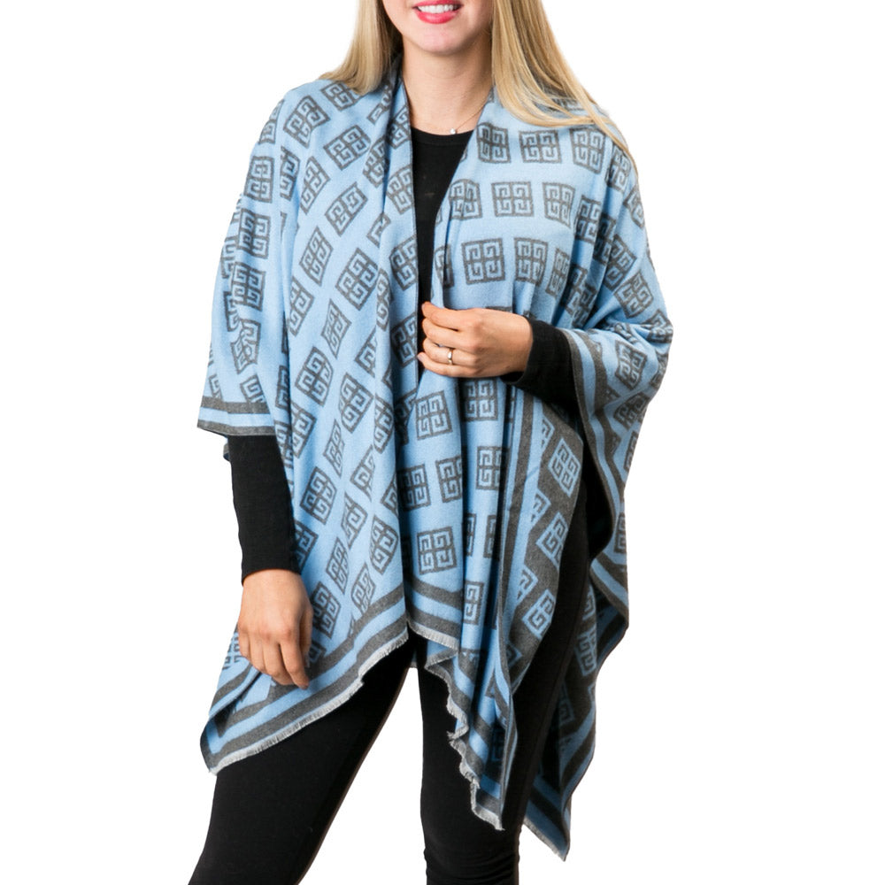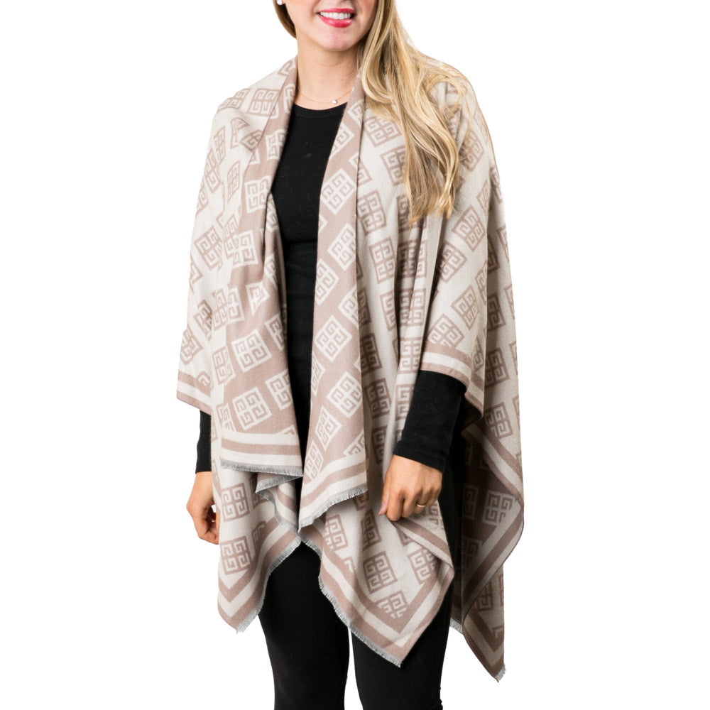 Elevate your everyday style with this chic, elegant reversible wrap. Featuring a timeless Greek key pattern in classic colors, this versatile layer adds instant polish to any look. Soft and luxurious with a cashmere-like feel, it’s the ideal travel companion or cool-weather staple. Effortlessly flattering and one size fits all—a sophisticated gift she’s sure to love!