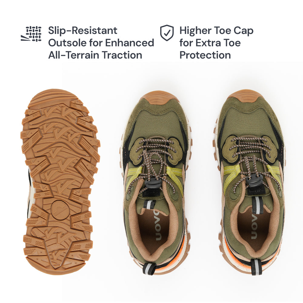 Durable and ready for anything. With a water-repellent upper, grippy traction, and an easy kid-friendly closure, these shoes are built to handle big energy and bigger adventures.
