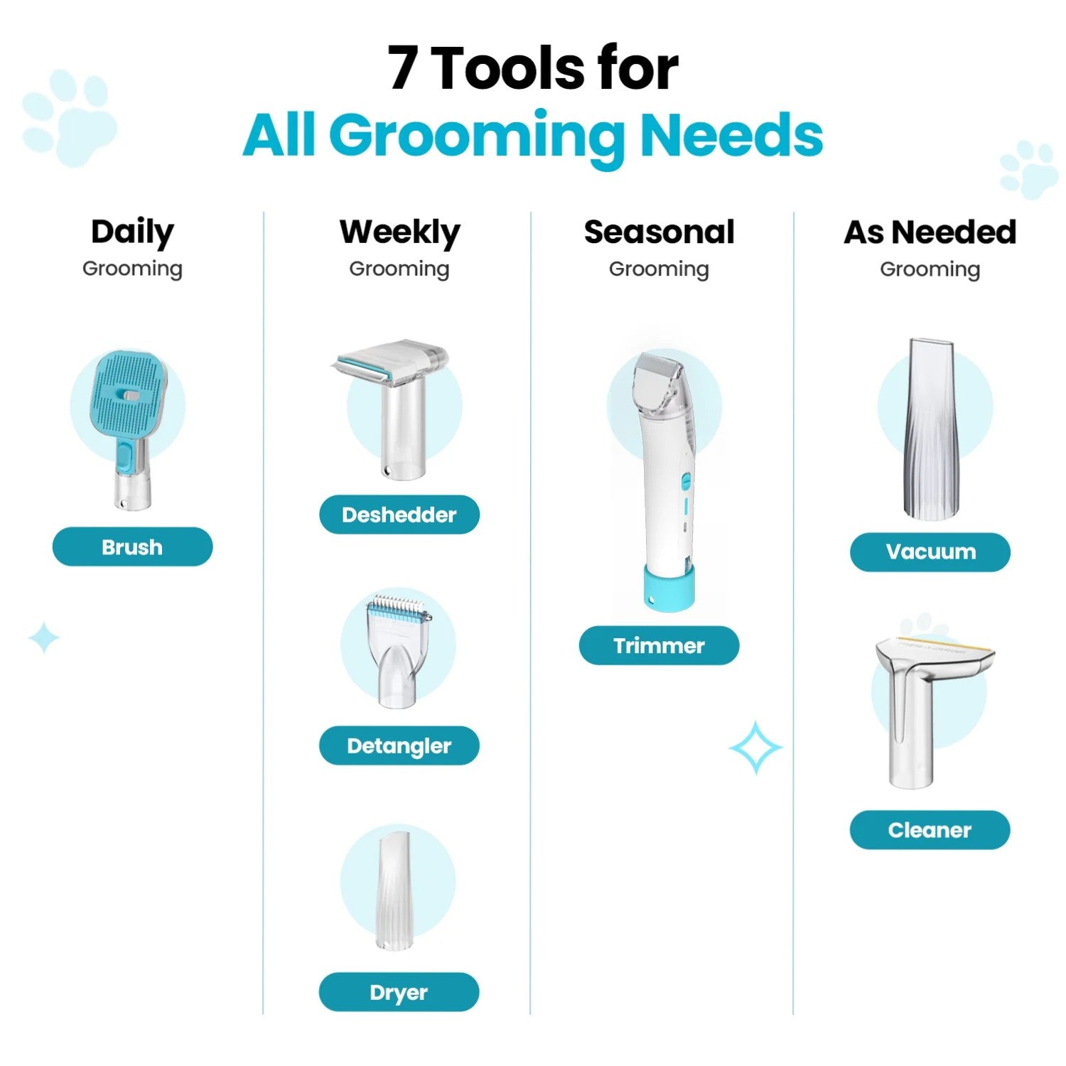 The Vacuum Powered Grooming Kit redefines pet care, offering seamless brushing, detangling, deshedding, trimming, cleaning, drying, and vacuuming—all without the mess.
