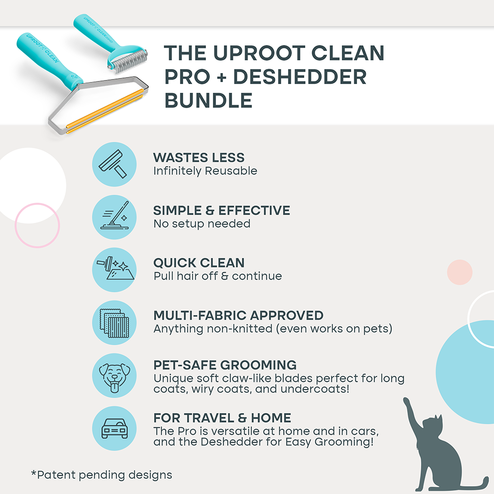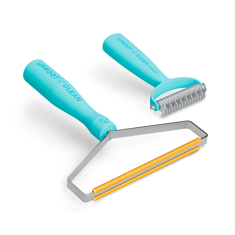 The Uproot Cleaner Pro & Deshedder set features two incredibly useful pet hair tools. The 5” wide Pro is ideal for everyday use to clean up pet hair around the house, and the Deshedder is a super effective yet gentle deshedding rake for tackling pet hair at its source!