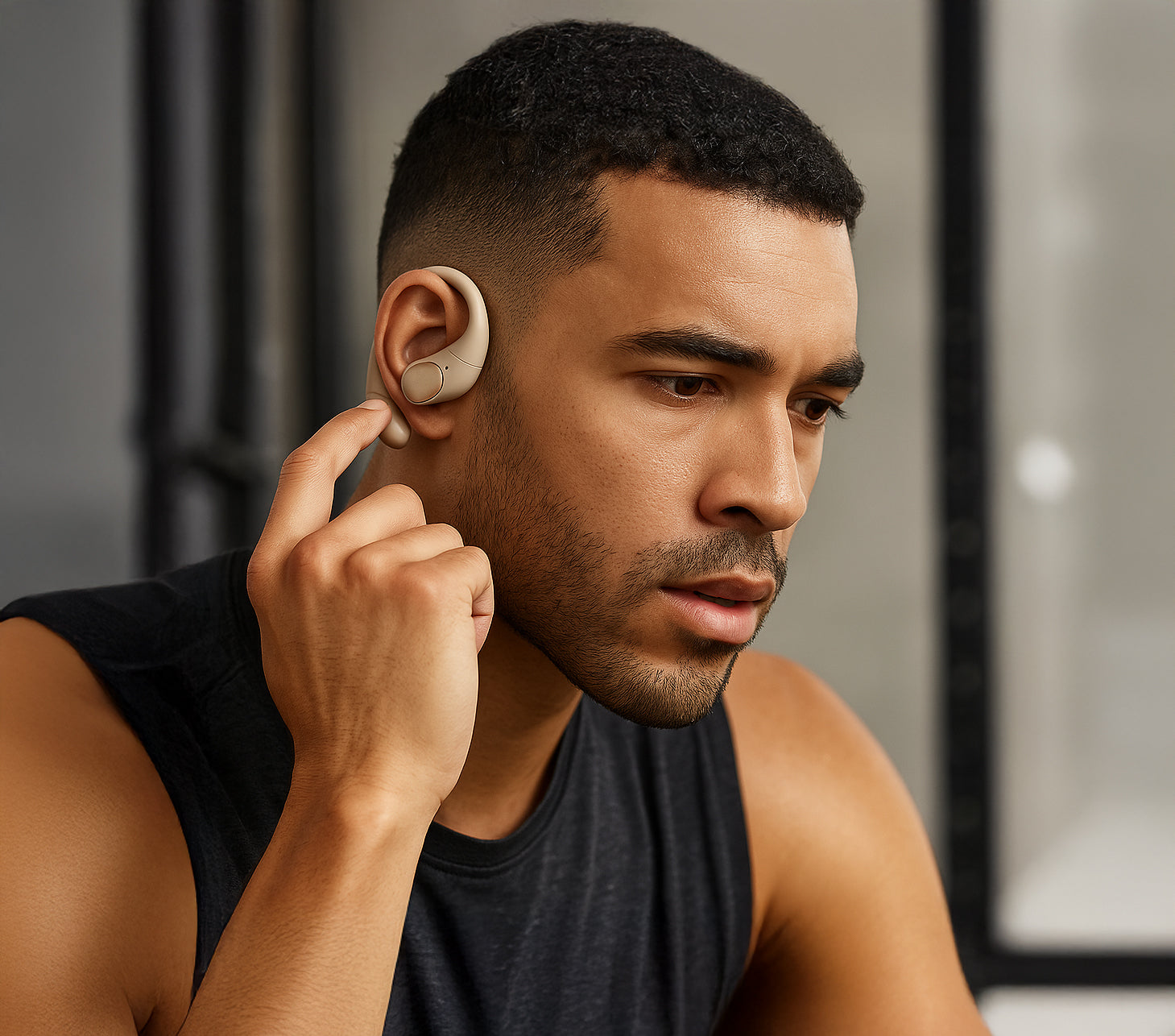 • Wear them so the open-ear speakers sit comfortably around your ears — this lets you stay aware of your surroundings while listening
