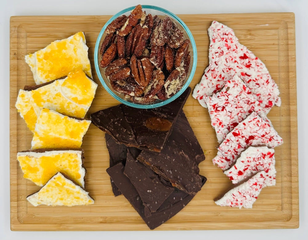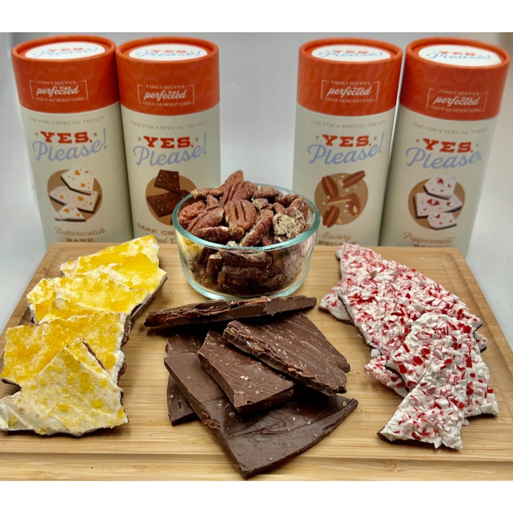 Whether you can't decide which flavors you like best, or don’t want to limit yourself, a bundle with both savory and sweet bites brings cheer to any face. Butterscotch Chocolate Bark, Dark Chocolate Salted Caramel Bark, Savory Pecans, and Peppermint Chocolate Bark are sure to add some warmth and flavor fun to any occasion.