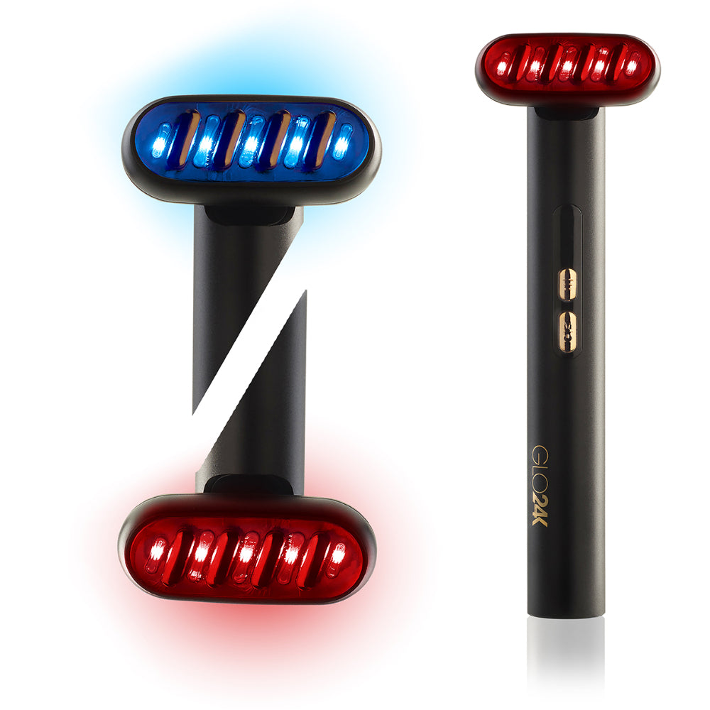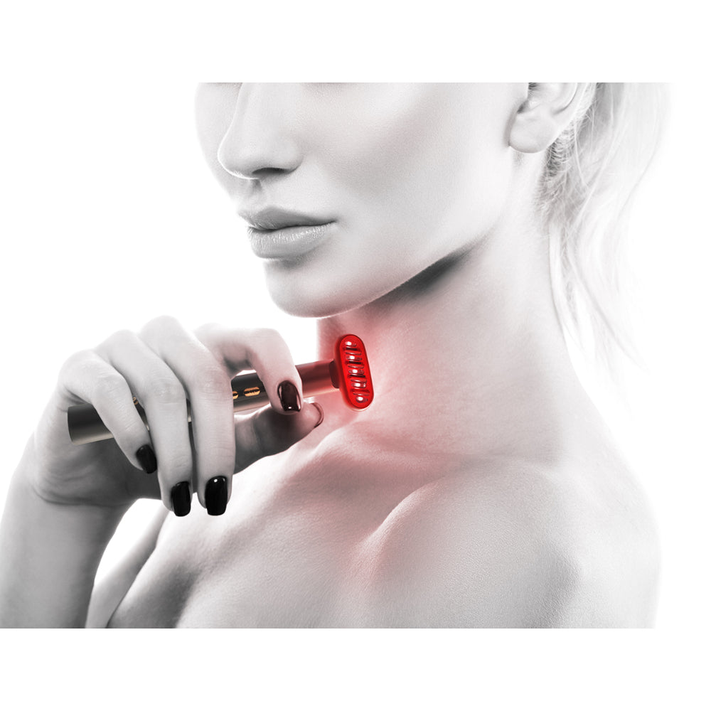 The 6-in-1 Beauty Therapy Wand delivers a spa-like experience at home through dual LED light therapy (red and blue), thermal, and vibration technologies. It targets all major concerns—fine lines, wrinkles, puffiness, and sagging—on the face, neck, and around the eyes.