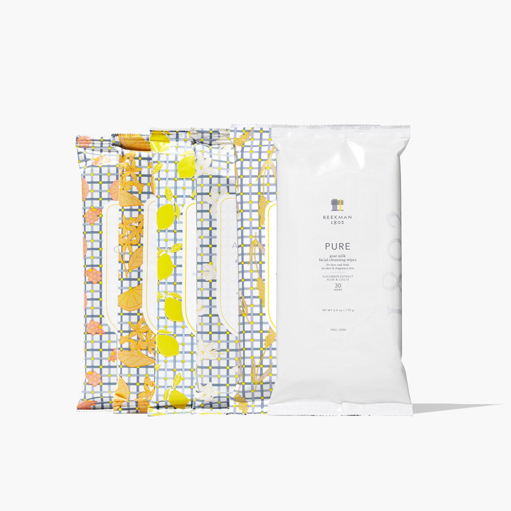 Keep skin clean and refreshed amidst the hustle with this set for carefree cleansing! This gift set of Goat Milk Face & Body Cleansing Wipes combines convenience with indulgence, offering a quick and easy way to remove makeup and dirt no matter where you are, as well as an array of signature scents (plus a fragrance-free option!).