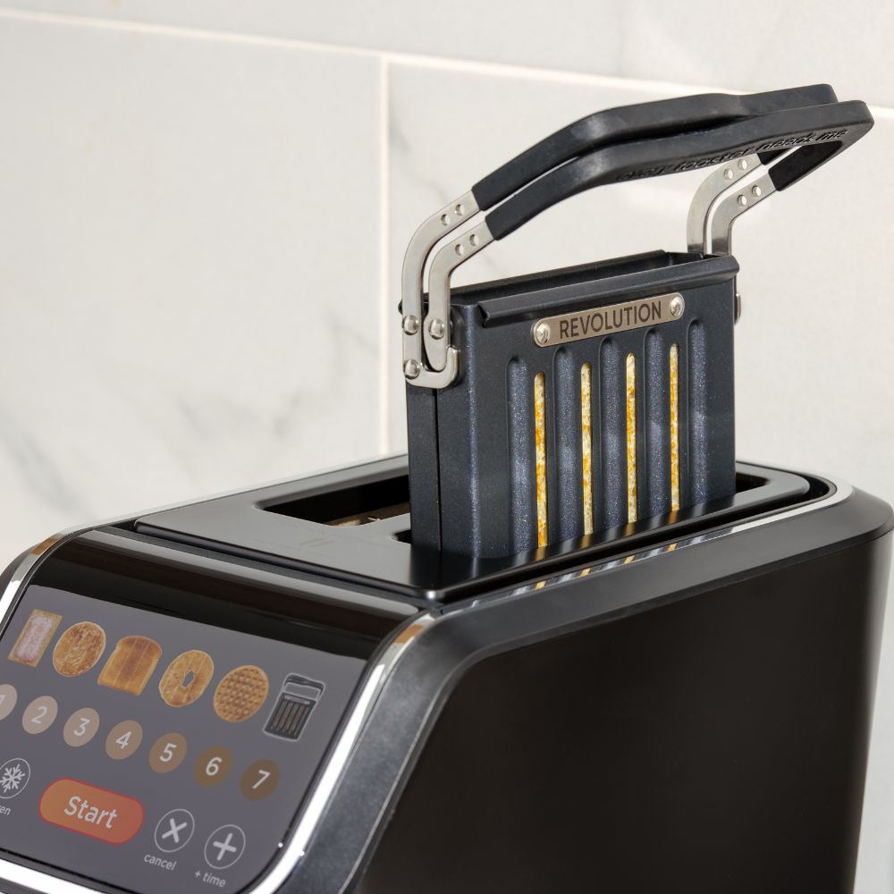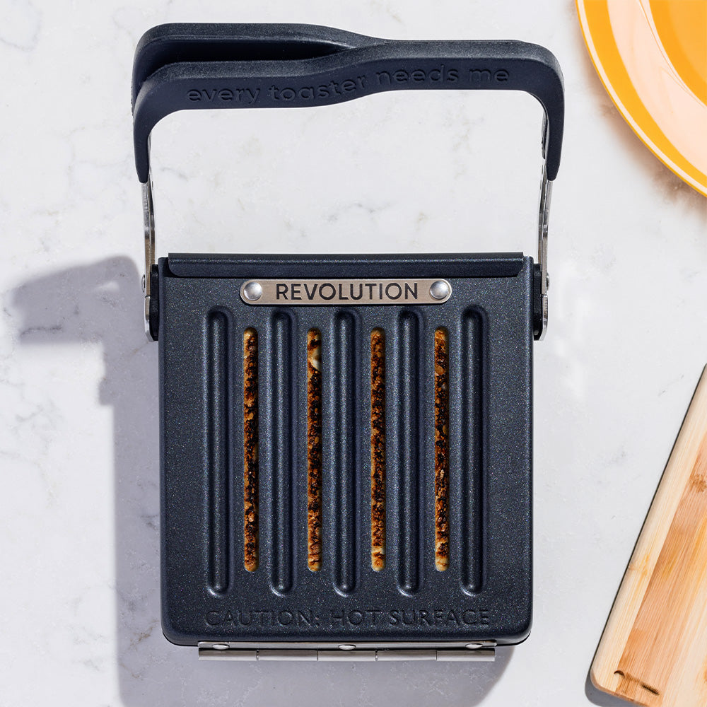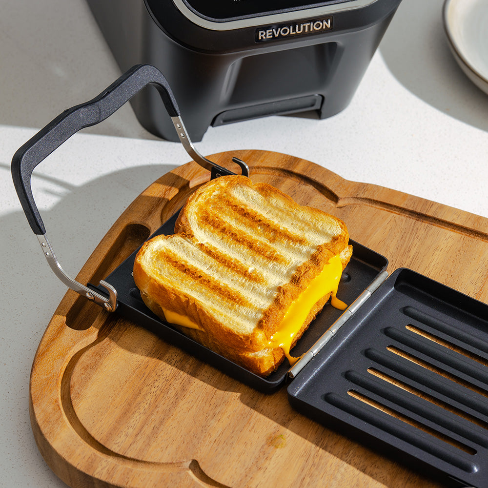 Make delicious toasties and have fun while doing itwith this bundle featuring the R90 Digital Toaster and Toastie Press™! The two-slice toaster reaches full heat in seconds, searing the bread without drying it to leave it crispy on the outside and soft inside. The Toastie Press™ allows you to create toasted sandwiches (aka “toasties”), quesadillas, melts, and more in your toaster. Its patented design grills the sandwich exterior and melts the interior with conductive heat transfer, similar to a panini press.