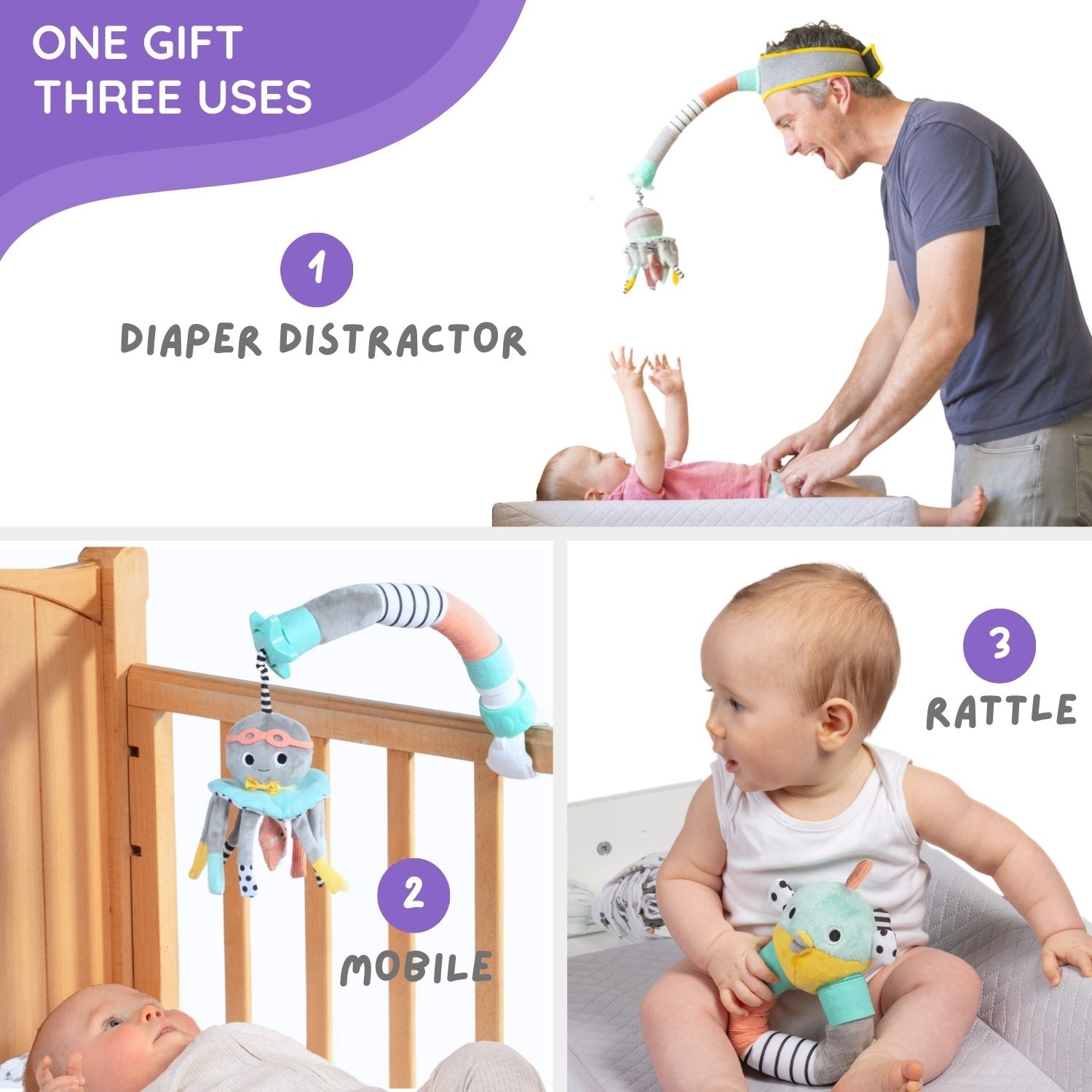 Meet the Dingle Dangle Deluxe Gift Set, the 3-in-1 baby gift set designed to make diaper changes calmer, playtime smarter, and gifting way more fun. Because your baby gift shouldn’t just look cute—it should make life easier, calmer, and a lot more fun for both parents and baby.
