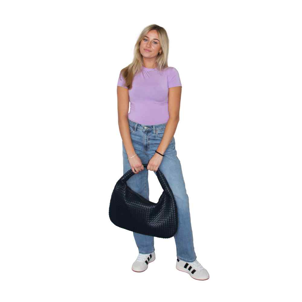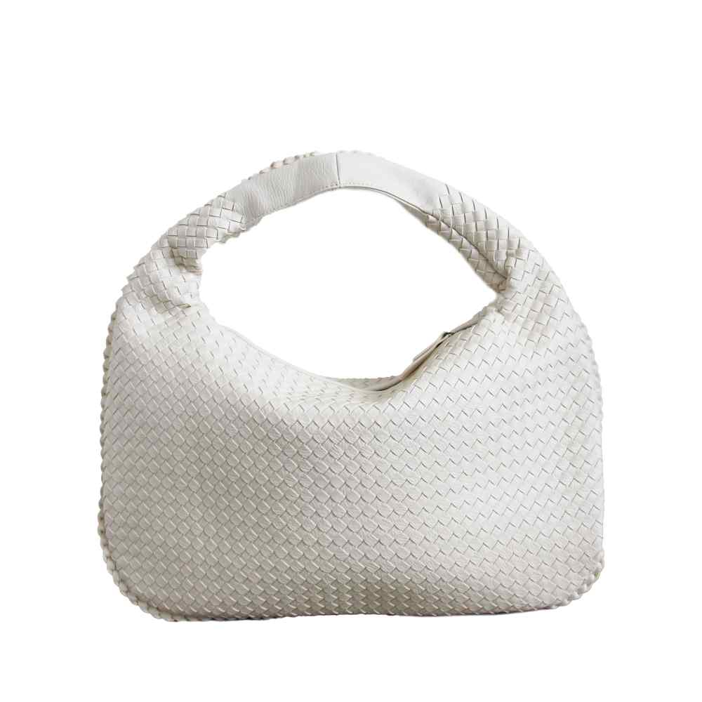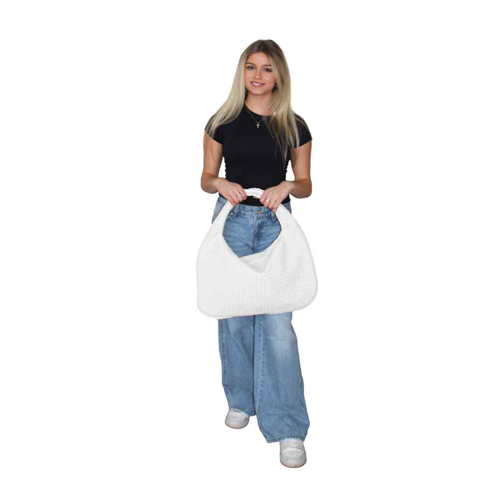 Introducing the Donna Woven Bindle Bag. This stylish bag features a convenient top zipper closure and interior zipper pocket, providing ample space for all your essentials. The Donna effortlessly drapes over your shoulder, making it the ideal accessory for everyday use.