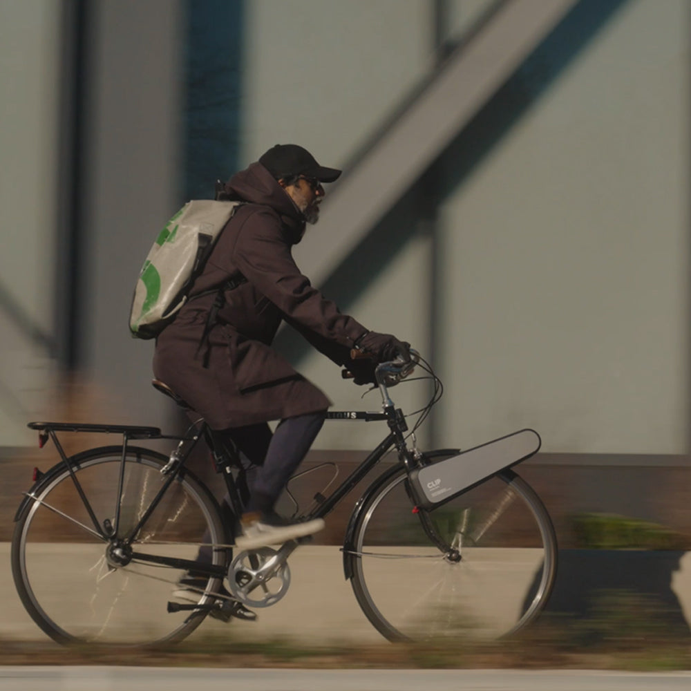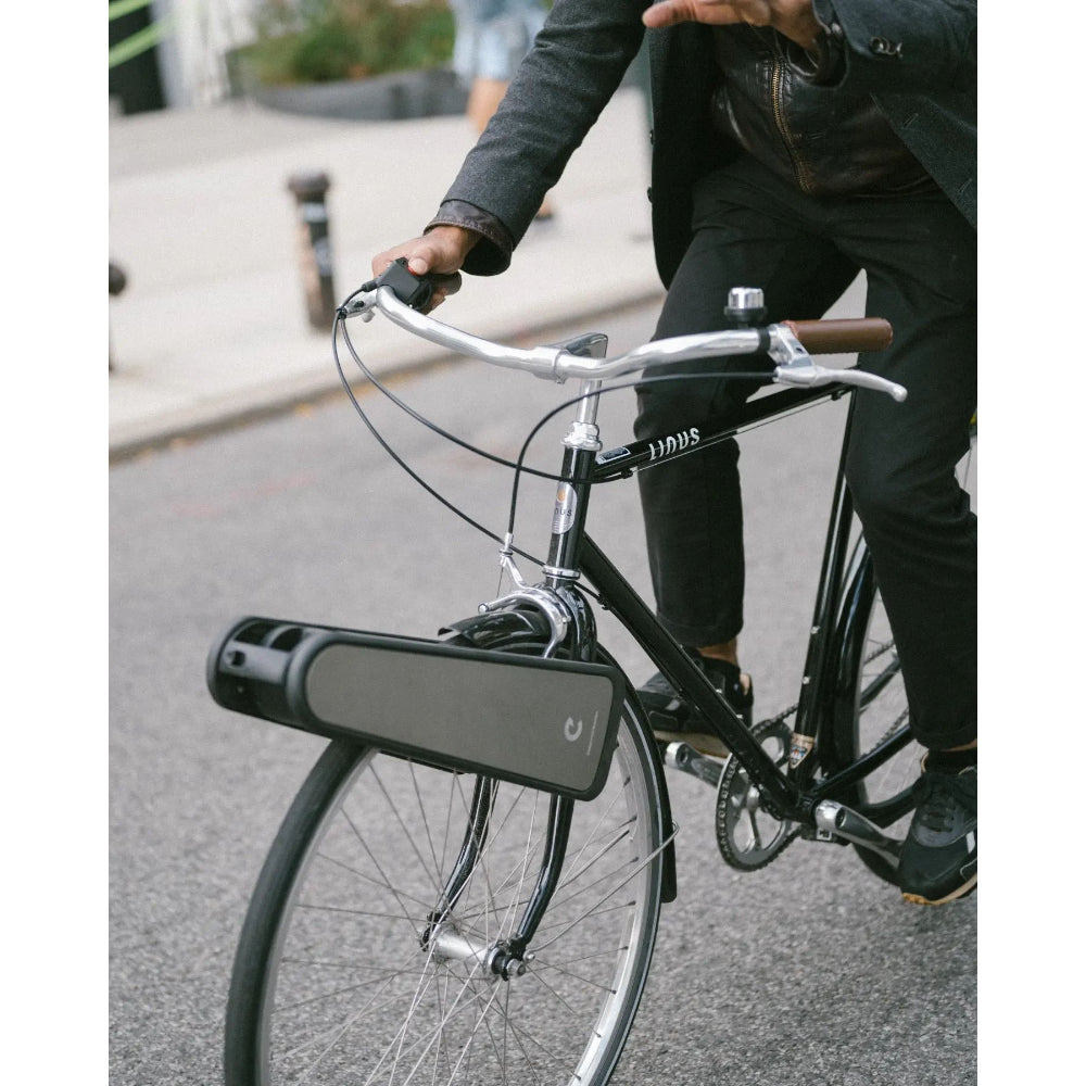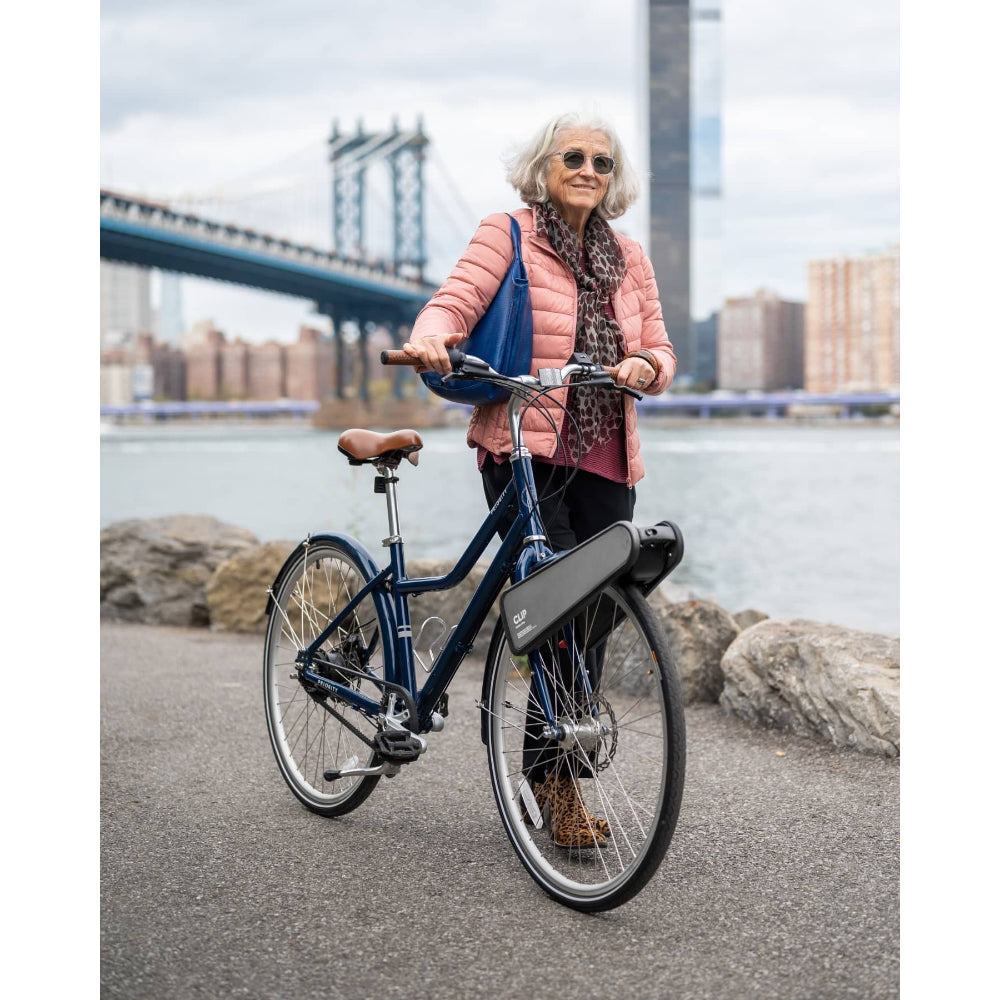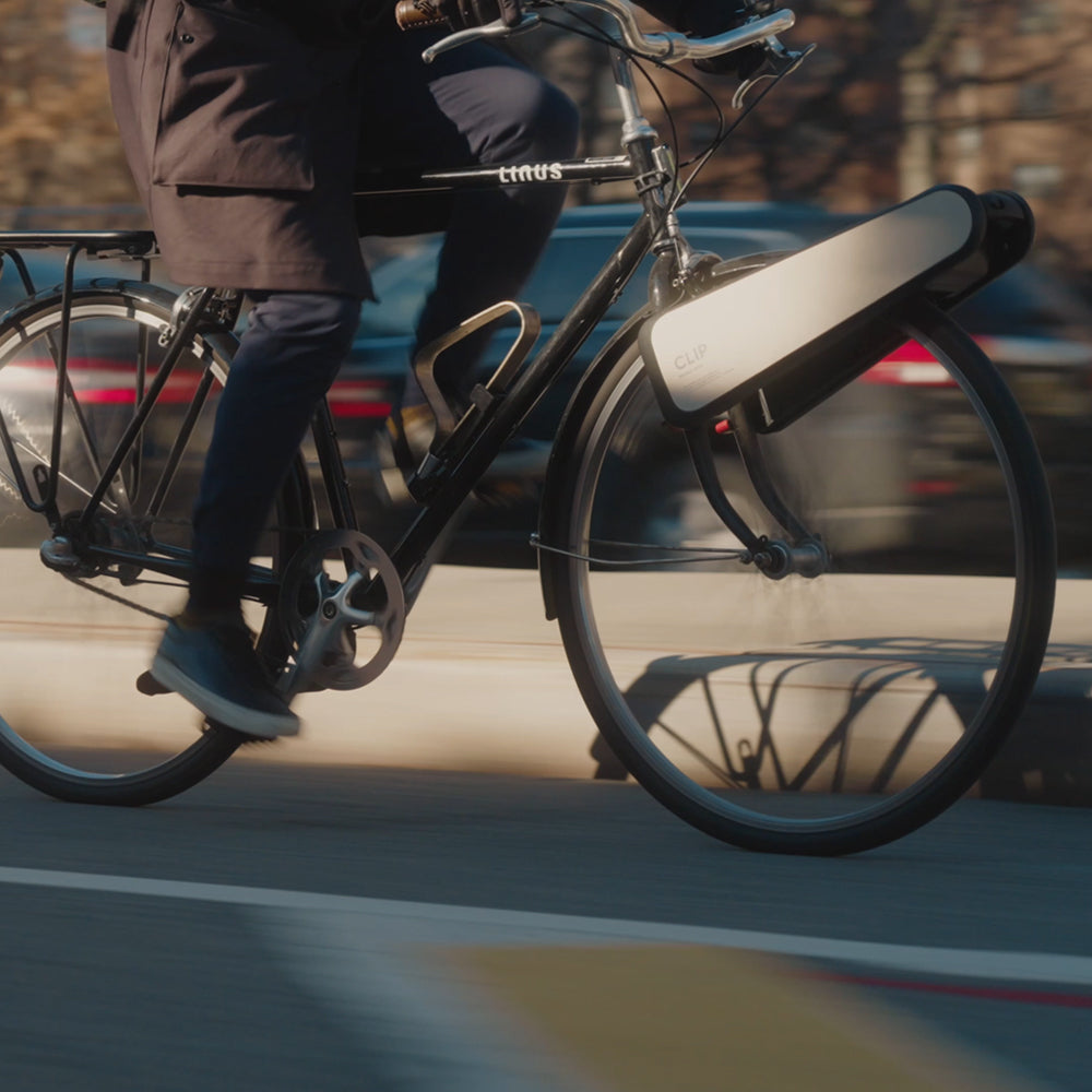 Designed to electrify any bike to an e-bike instantly, with no tools required. Ready to go out of the box, attach CLIP in less than 10 seconds to your regular bike. CLIP’s boost provides up to 15 mph of smooth assist on uphills. Use the regenerative charging feature to recharge your CLIP while you ride. Easily detach it and take it inside to fully recharge on your desk in an hour or less. CLIP is portable and fits in a backpack.