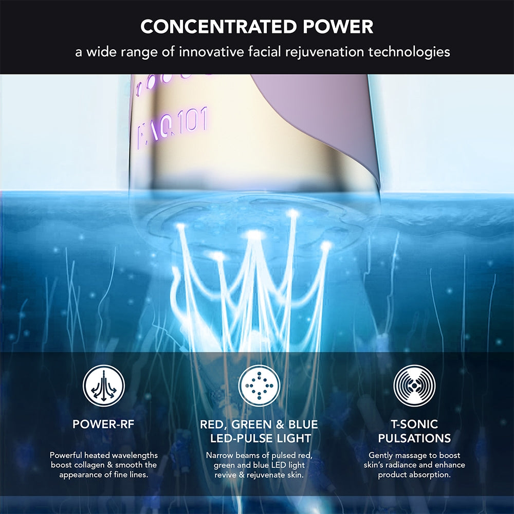 Step into the exciting, unexplored areas of contemporary skincare tech, ushering in a new era of clinical-grade anti-aging. FAQ™ 101 is an ideal entry into radio frequency and LED-pulse professional rejuvenating treatments at home, featuring heated radio frequency waves, pulsed LED light therapy including red light therapy, and T-Sonic™ massage to help ensure a tighter, glowing, instantly V-sculpted complexion in just minutes per day.