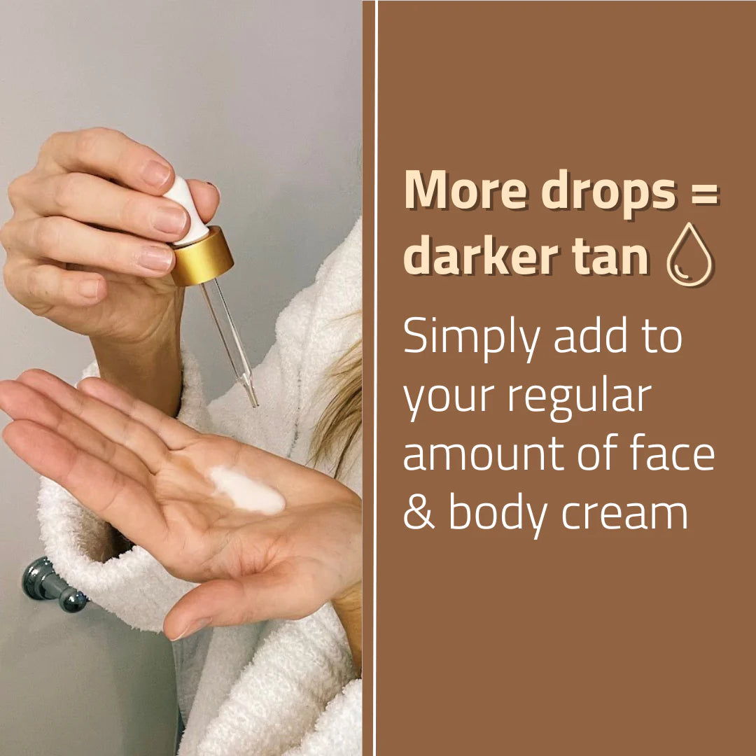 - Add 2–12 drops of Self-Tanning Drops to your preferred moisturizer
