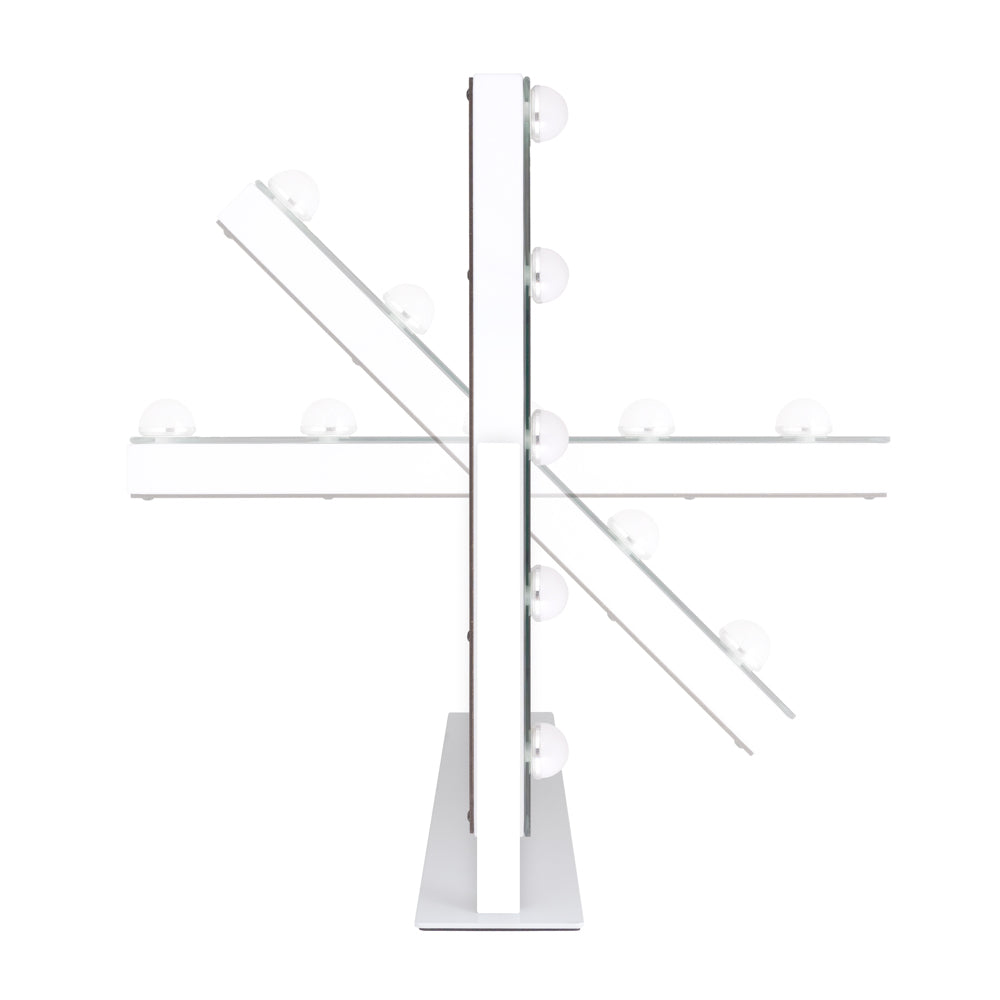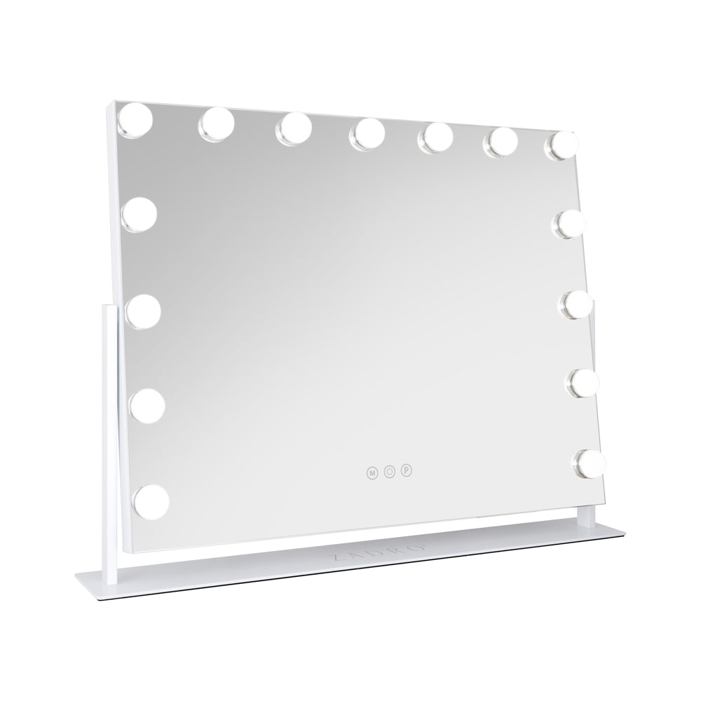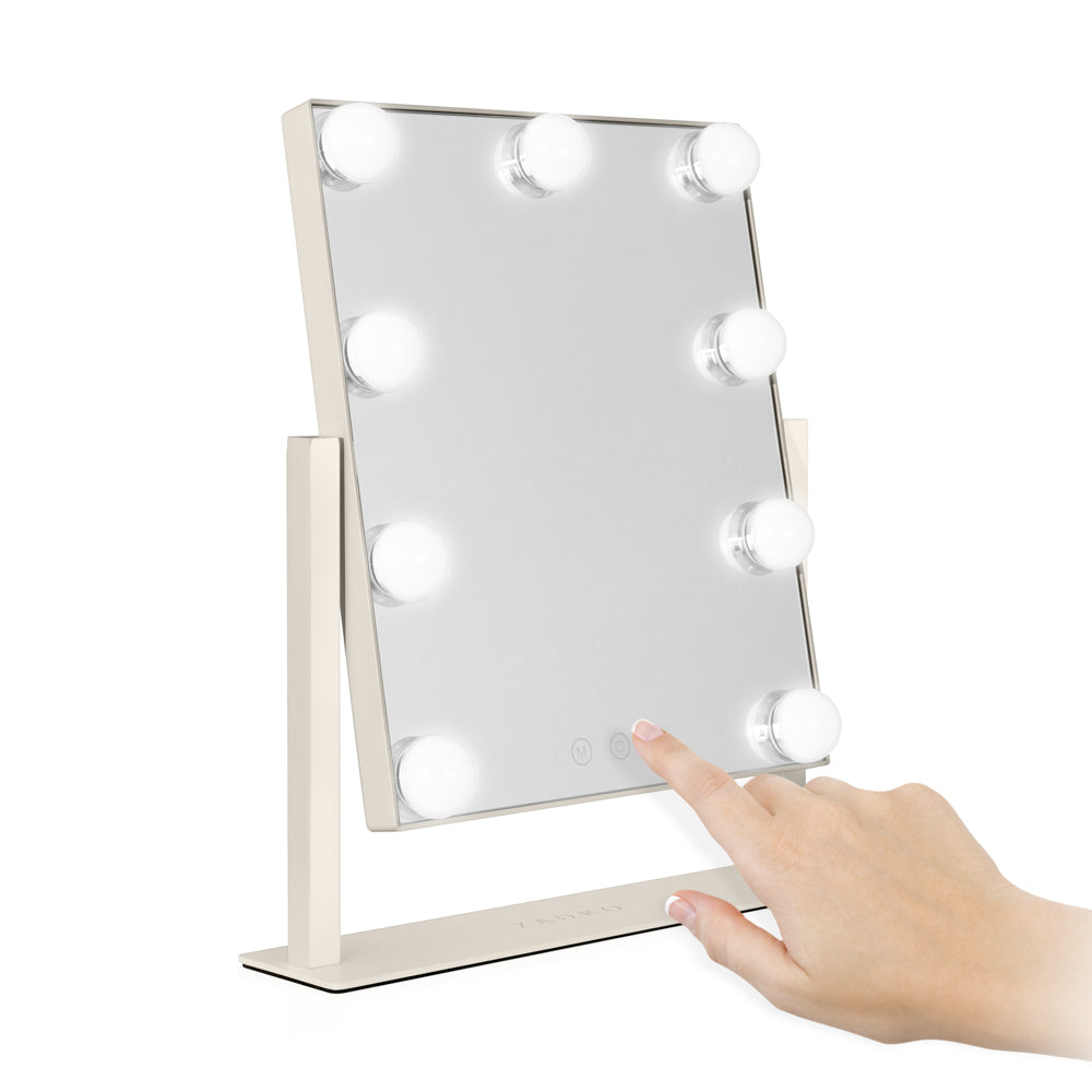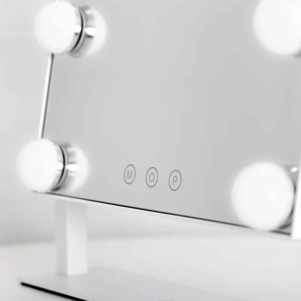 Introducing the ideal mirror for your most glamorous moments—the LED-Lighted Hollywood Vanity Mirror! The quality 1x magnification mirror head is generously sized to see every detail. Equipped with energy-saving dome LED bulbs, these lights are cool to the touch and provide a 120° beam angle with a stylish sphere PC lampshade design. You can customize your glow with dimmable brightness and three light settings (cool white, warm white, and neutral white), while the convenient touch sensors allow you to effortlessly adjust brightness, switch between light settings, or power the mirror on/off. With an adjustable 360° rotation, you can achieve the best angle for flawless application. Combining elegance and functionality, the LED-Lighted Hollywood Vanity Mirror helps you enjoy professional lighting in the comfort of your home.