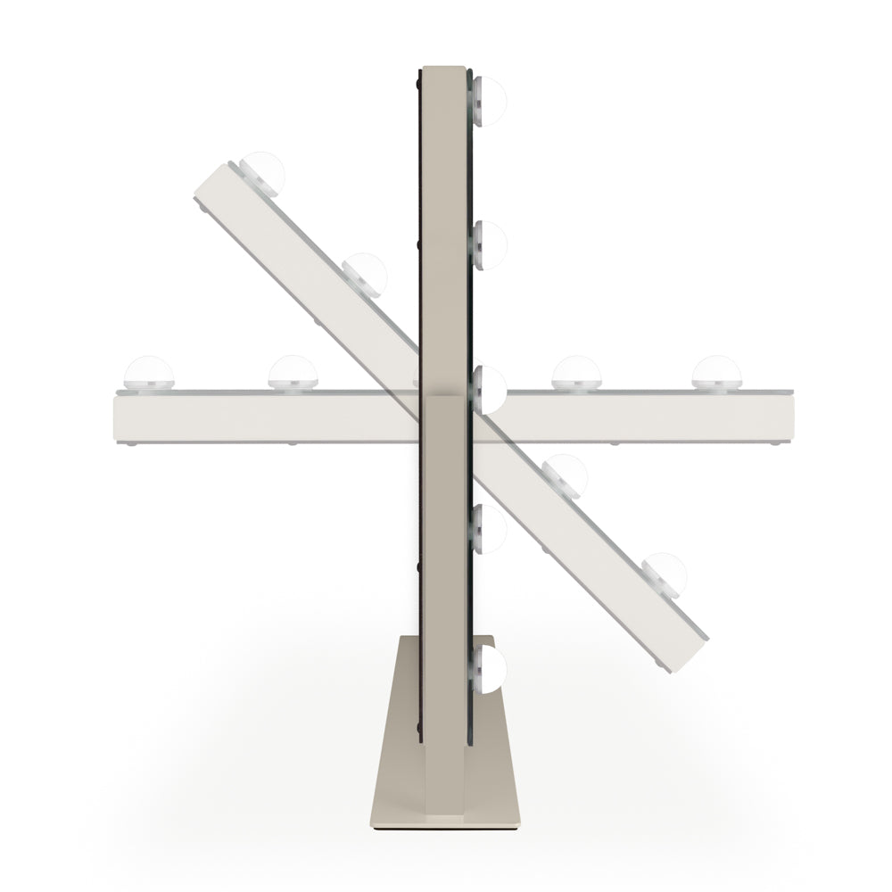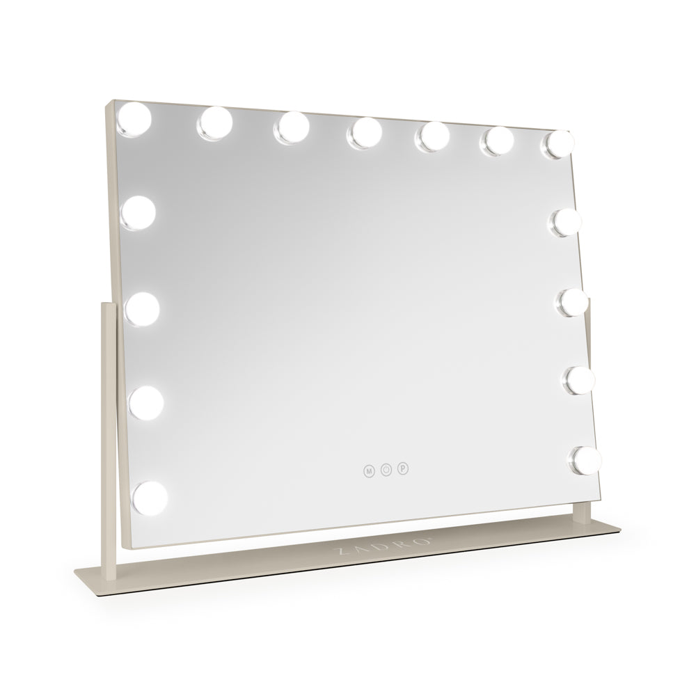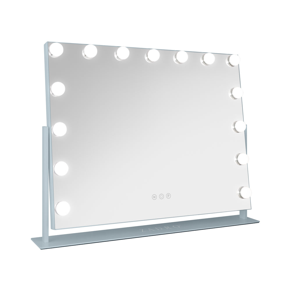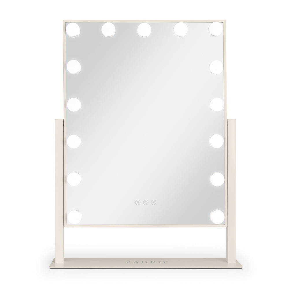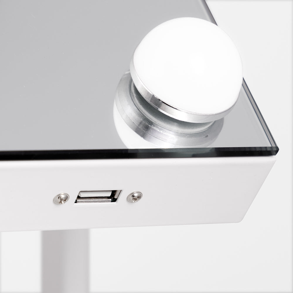Introducing the ideal mirror for your most glamorous moments—the LED-Lighted Hollywood Vanity Mirror! The quality 1x magnification mirror head is generously sized to see every detail. Equipped with energy-saving dome LED bulbs, these lights are cool to the touch and provide a 120° beam angle with a stylish sphere PC lampshade design. You can customize your glow with dimmable brightness and three light settings (cool white, warm white, and neutral white), while the convenient touch sensors allow you to effortlessly adjust brightness, switch between light settings, or power the mirror on/off. With an adjustable 360° rotation, you can achieve the best angle for flawless application. Combining elegance and functionality, the LED-Lighted Hollywood Vanity Mirror helps you enjoy professional lighting in the comfort of your home.