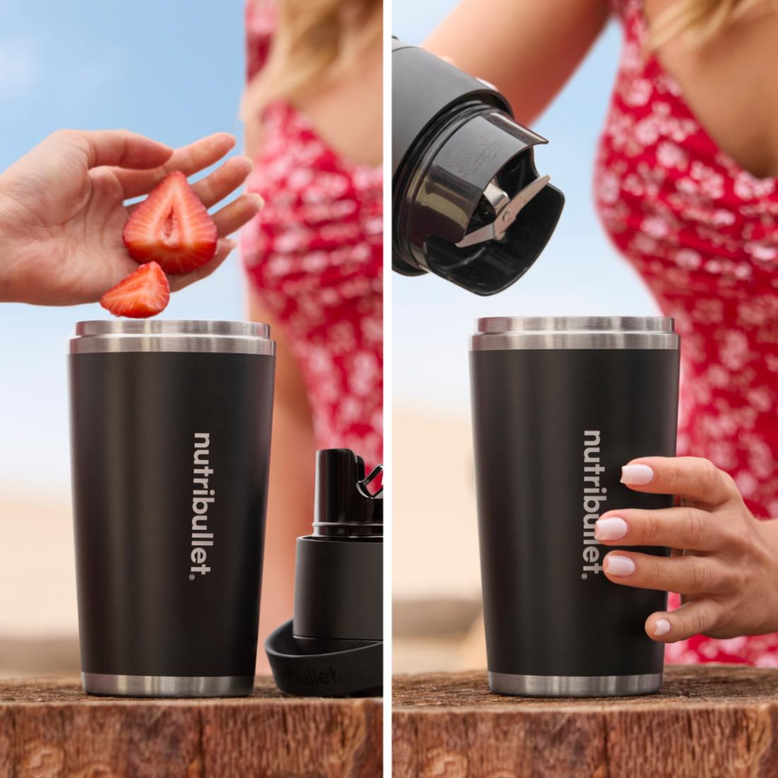The nutribullet Flip is a unique combination of a portable blender and an insulated tumbler. Its stainless steel cup keeps contents cold for up to 24 hours, making it the ideal companion for road trips, gym sessions, and other thrilling adventures.
