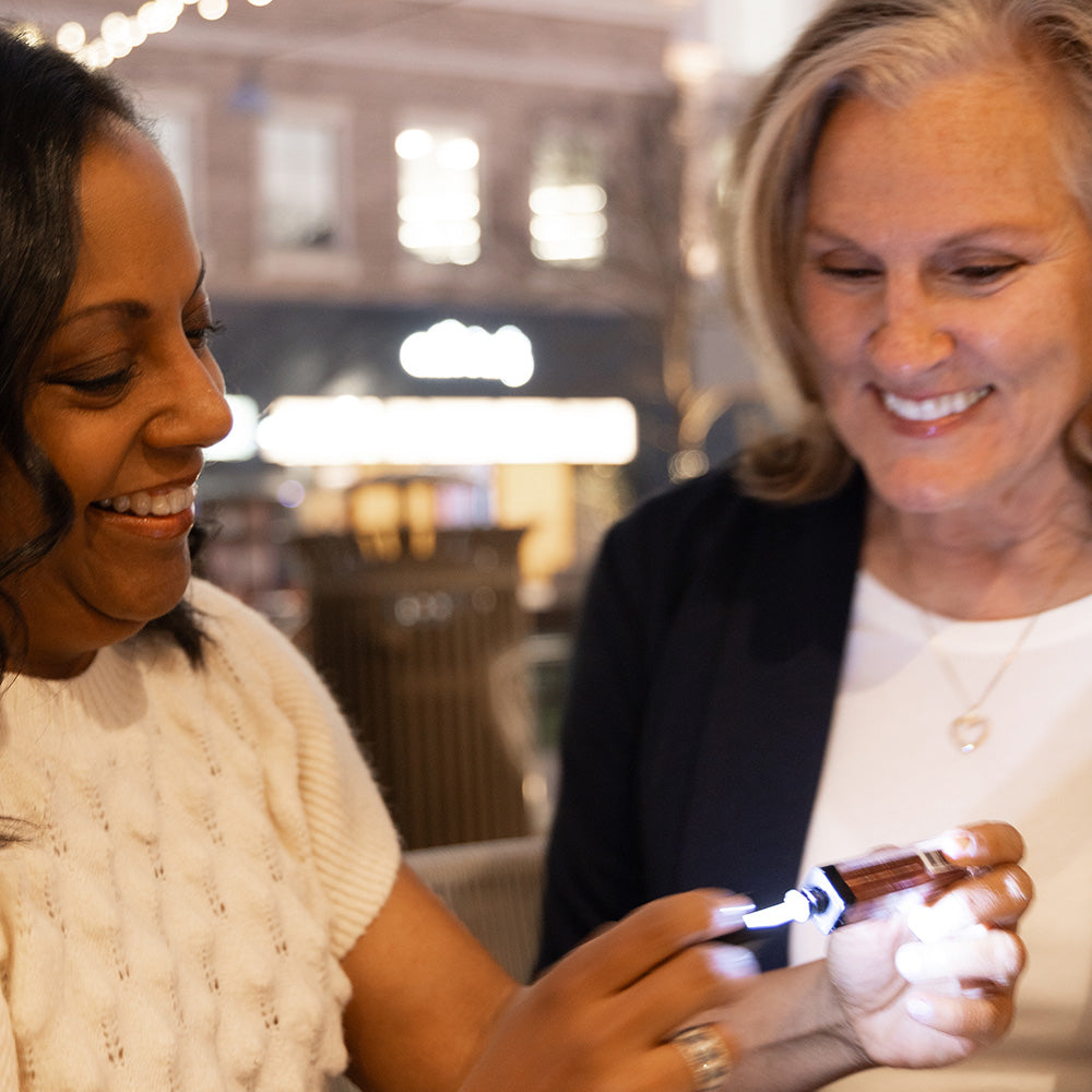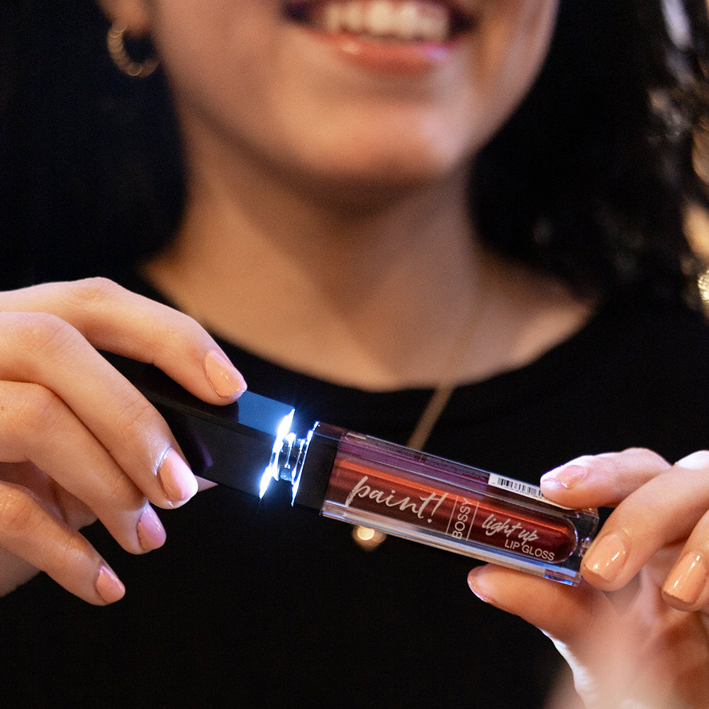 This lip gloss is seriously handy! With a lighted wand and chic side mirror, you can apply this gloss anytime, anywhere. The luxurious, natural-based formula is enriched with aloe vera, jojoba oil, and grapeseed oil to help smooth, soothe, and keep your lips feeling soft.