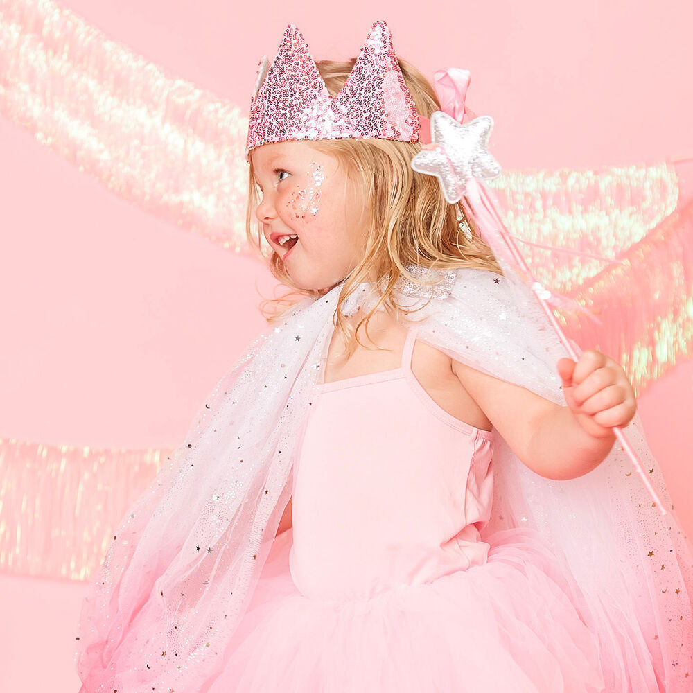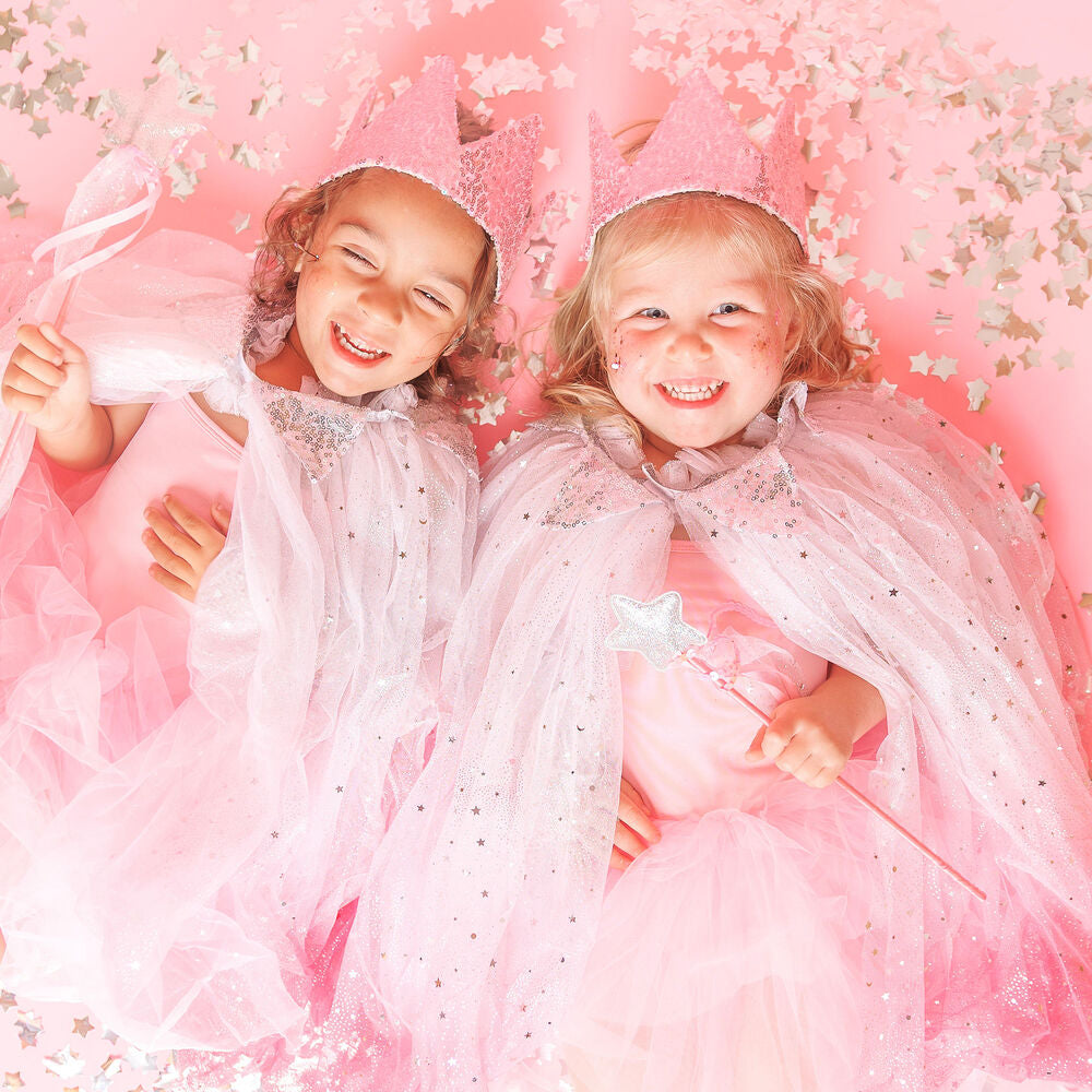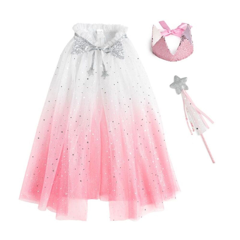 Fit for a princess! This kit includes everything your little royal needs for the ultimate dress-up ensemble—a touch of pink and a dash of sparkle. It’s ideal for princess play, birthday parties, and everyday make-believe moments.
