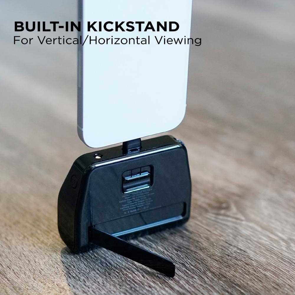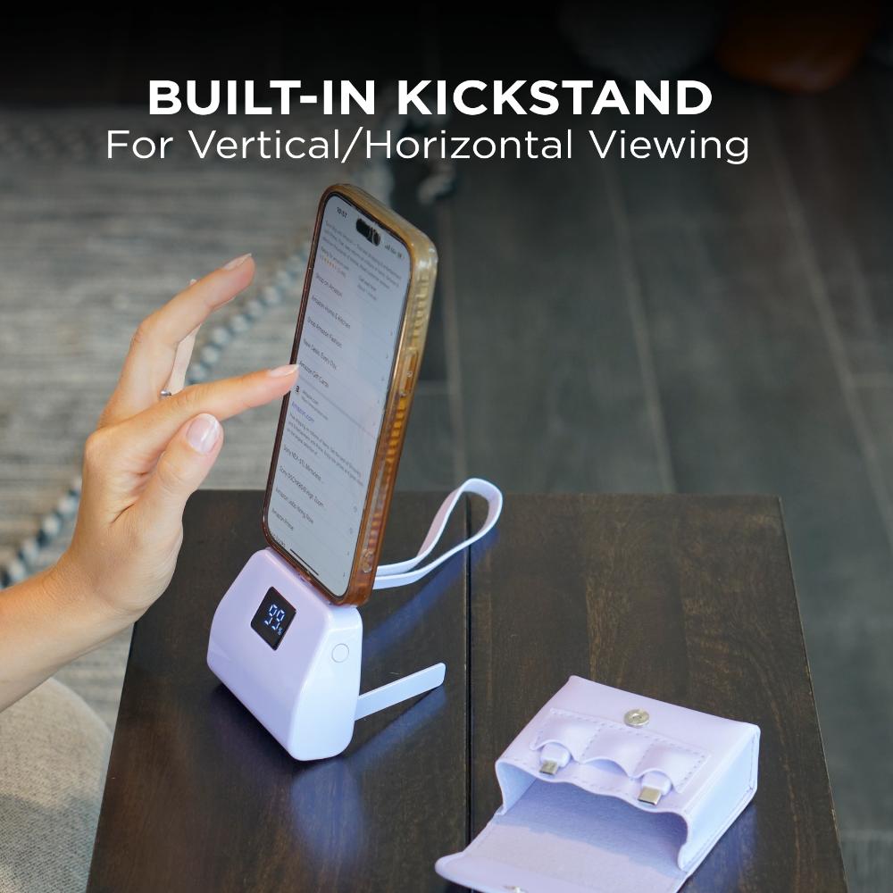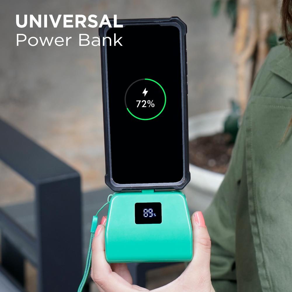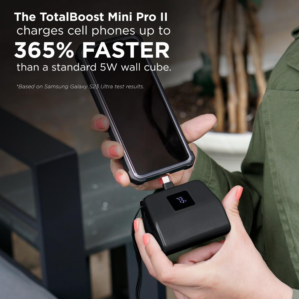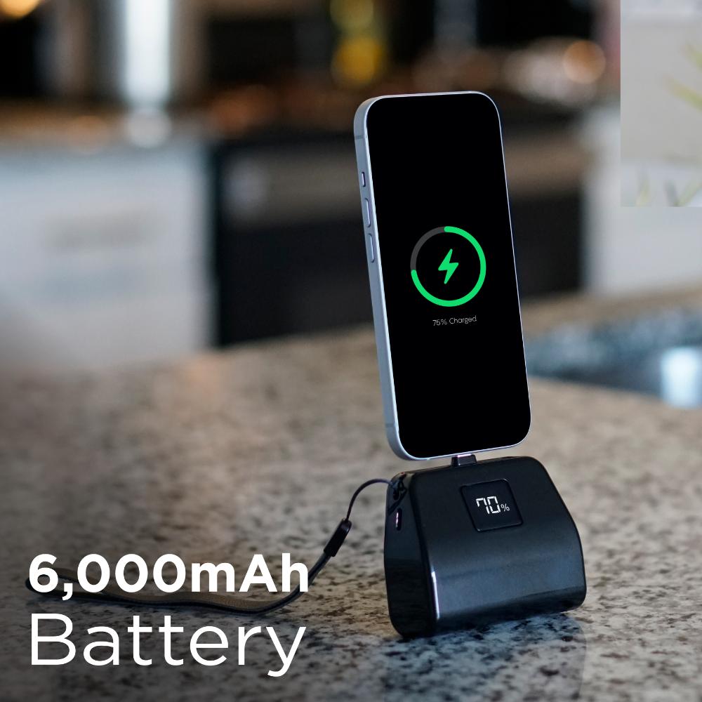 Say goodbye to tangled cords and bulky chargers—with the TotalBoost Mini Pro II, everything you need is built right in. This sleek, ultra-portable power bank keeps you powered up anywhere, anytime—no extra cables required. Equipped with built-in interchangeable charging adapters (Type-C, Lightning, and Micro-USB), the TotalBoost Mini Pro II delivers complete compatibility for virtually any mobile device. The powerful 6,000mAh rechargeable battery provides multiple charges for your phone, earbuds, or other devices, while its cable-free design lets you move freely and charge with ease. Featuring a digital battery display, kickstand with magnetic closure, and mini flashlight, this compact powerhouse combines functionality, portability, and convenience in one smart design. Slip it into your pocket, purse, or travel bag—and stay connected wherever life takes you.