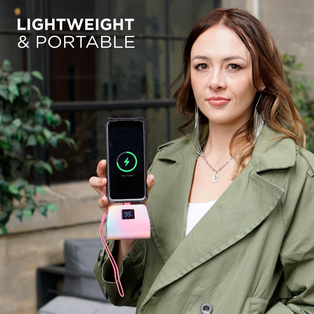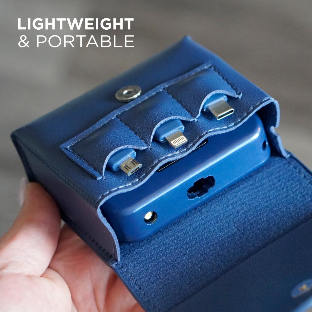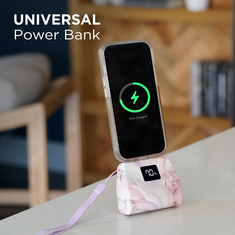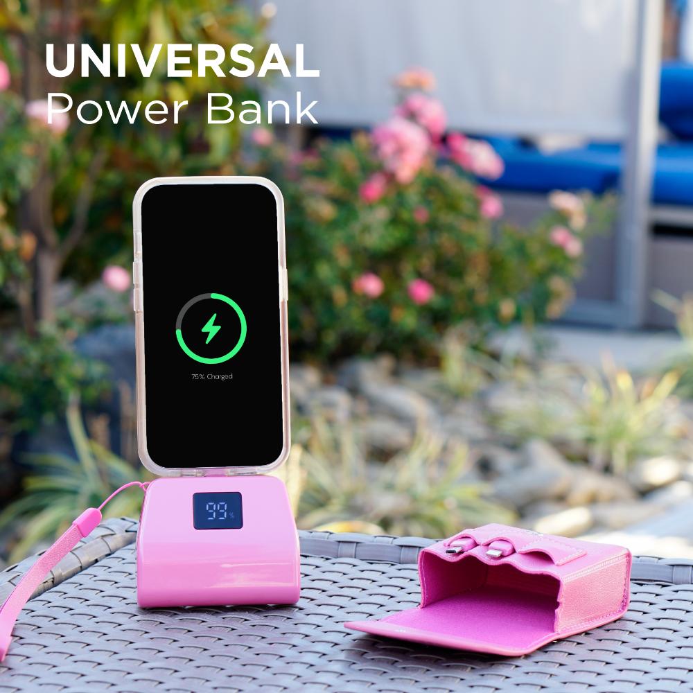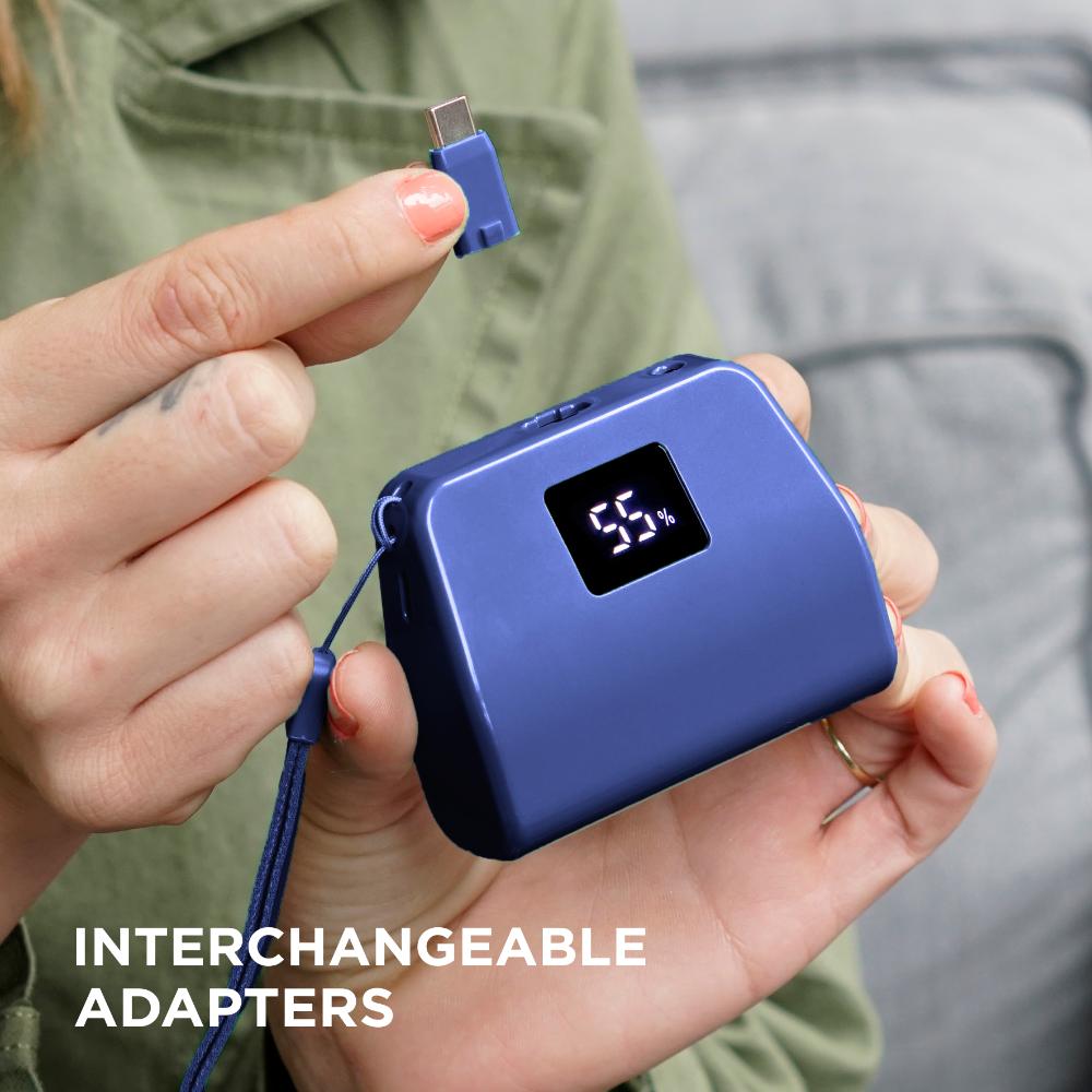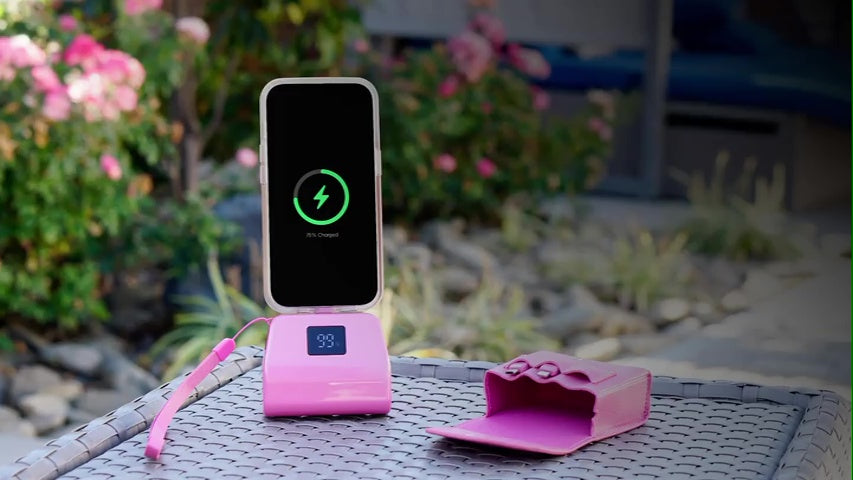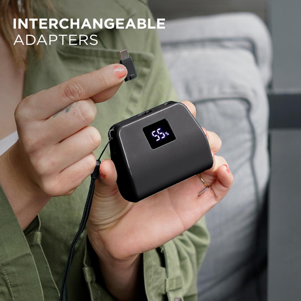 Say goodbye to tangled cords and bulky chargers—with the TotalBoost Mini Pro II, everything you need is built right in. This sleek, ultra-portable power bank keeps you powered up anywhere, anytime—no extra cables required. Equipped with built-in interchangeable charging adapters (Type-C, Lightning, and Micro-USB), the TotalBoost Mini Pro II delivers complete compatibility for virtually any mobile device. The powerful 6,000mAh rechargeable battery provides multiple charges for your phone, earbuds, or other devices, while its cable-free design lets you move freely and charge with ease. Featuring a digital battery display, kickstand with magnetic closure, and mini flashlight, this compact powerhouse combines functionality, portability, and convenience in one smart design. Slip it into your pocket, purse, or travel bag—and stay connected wherever life takes you.