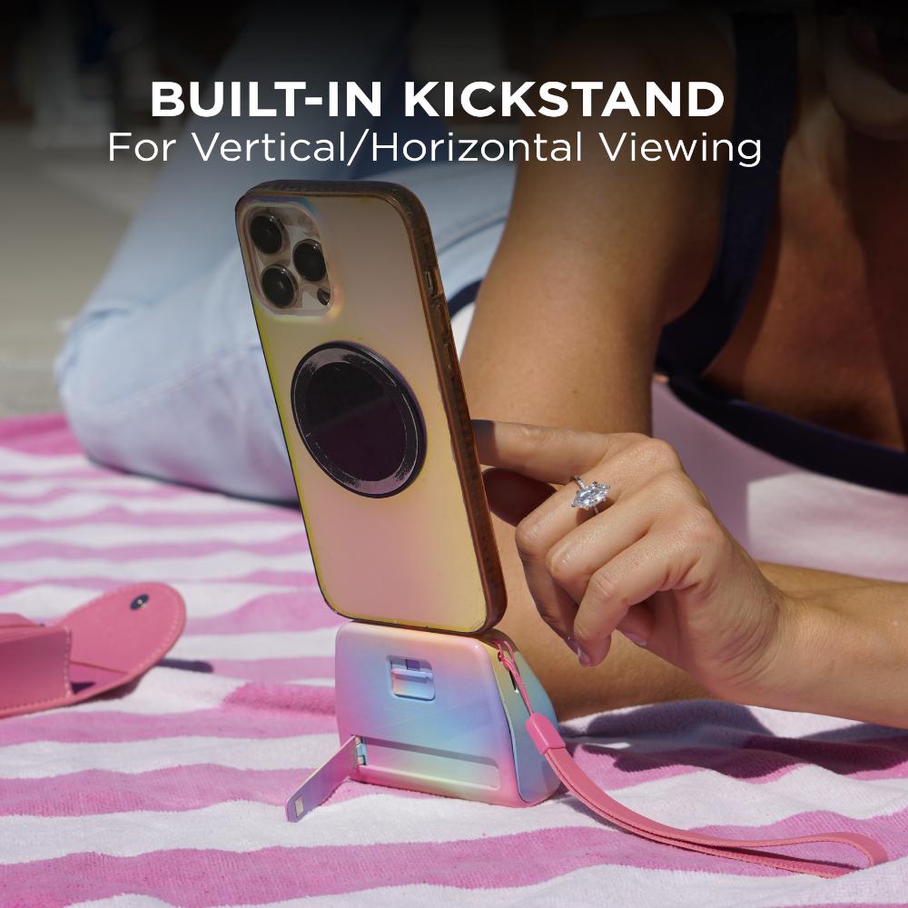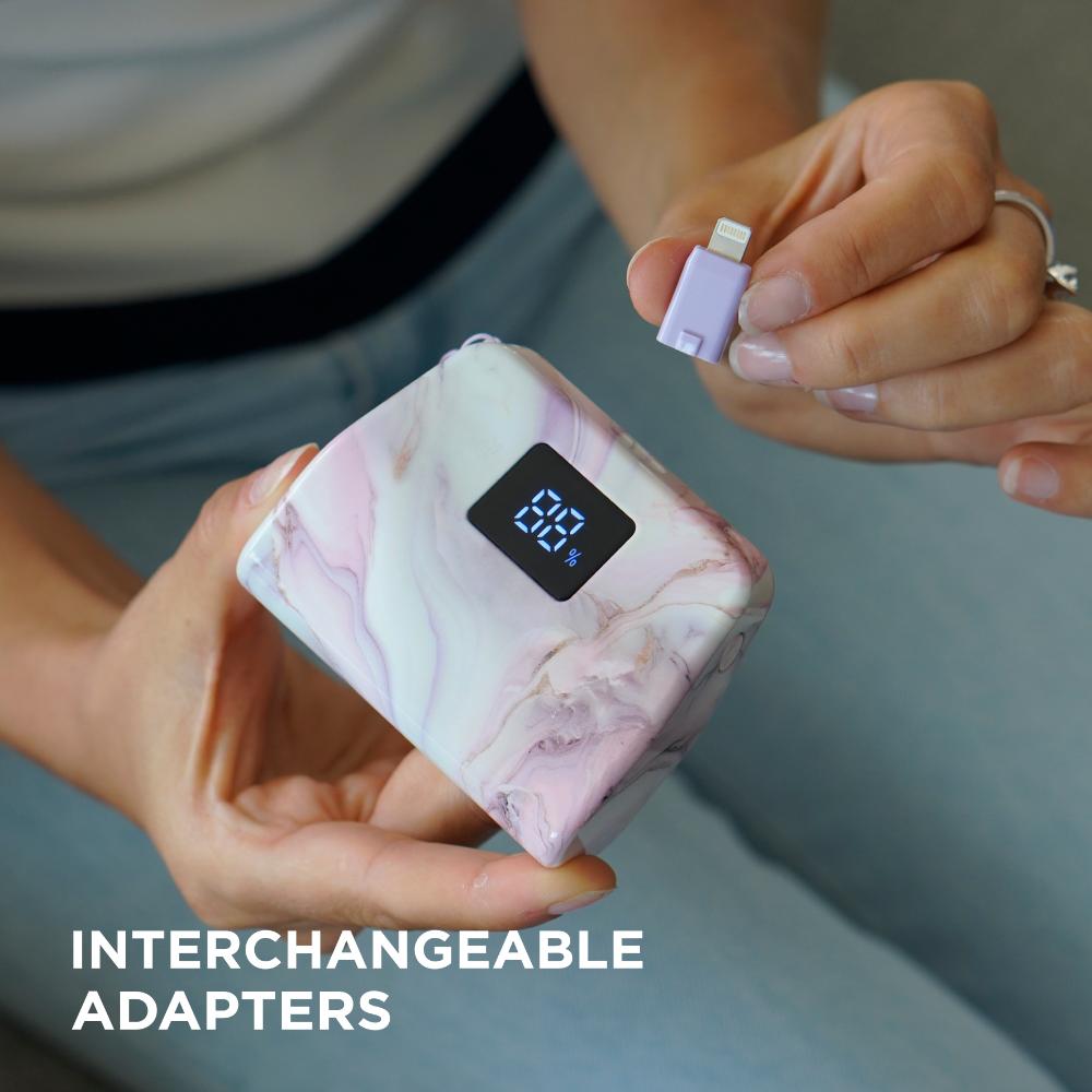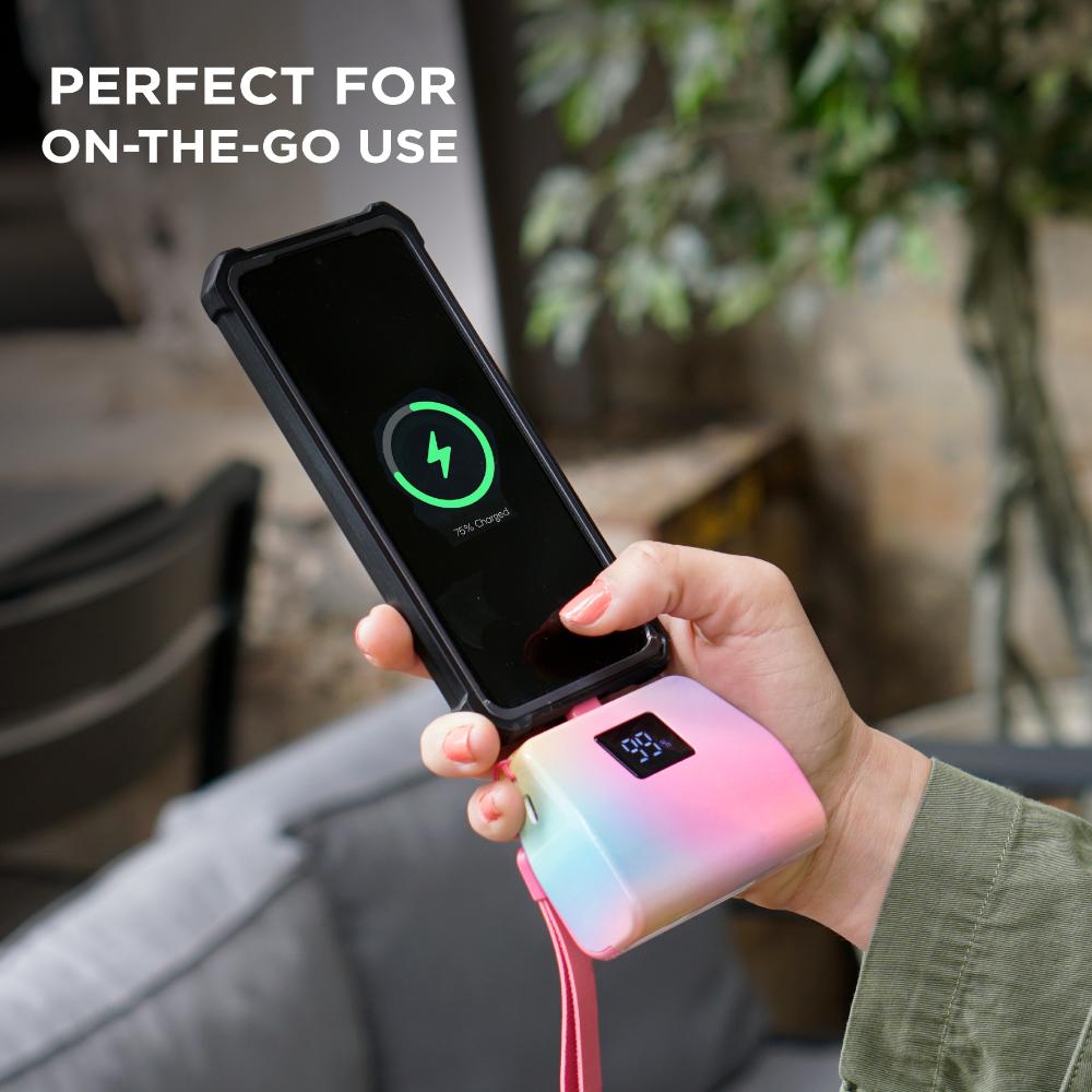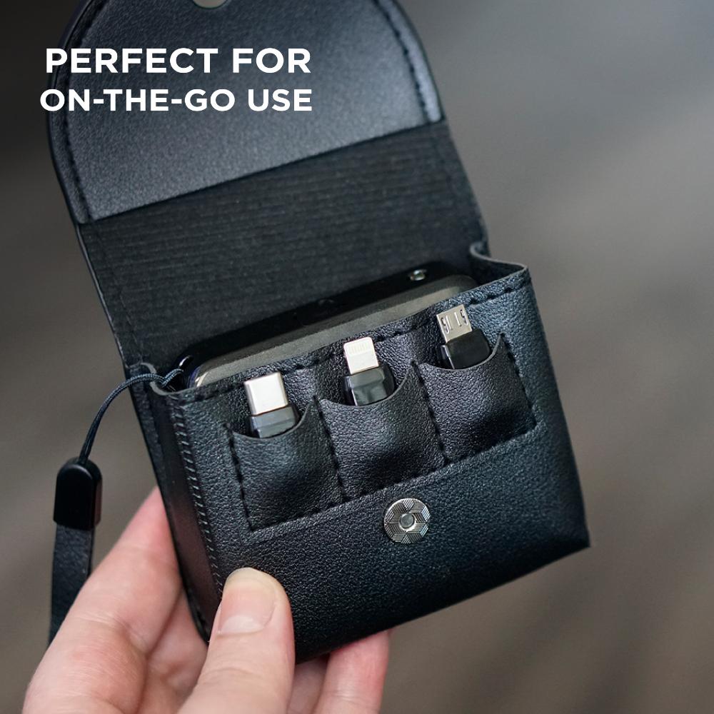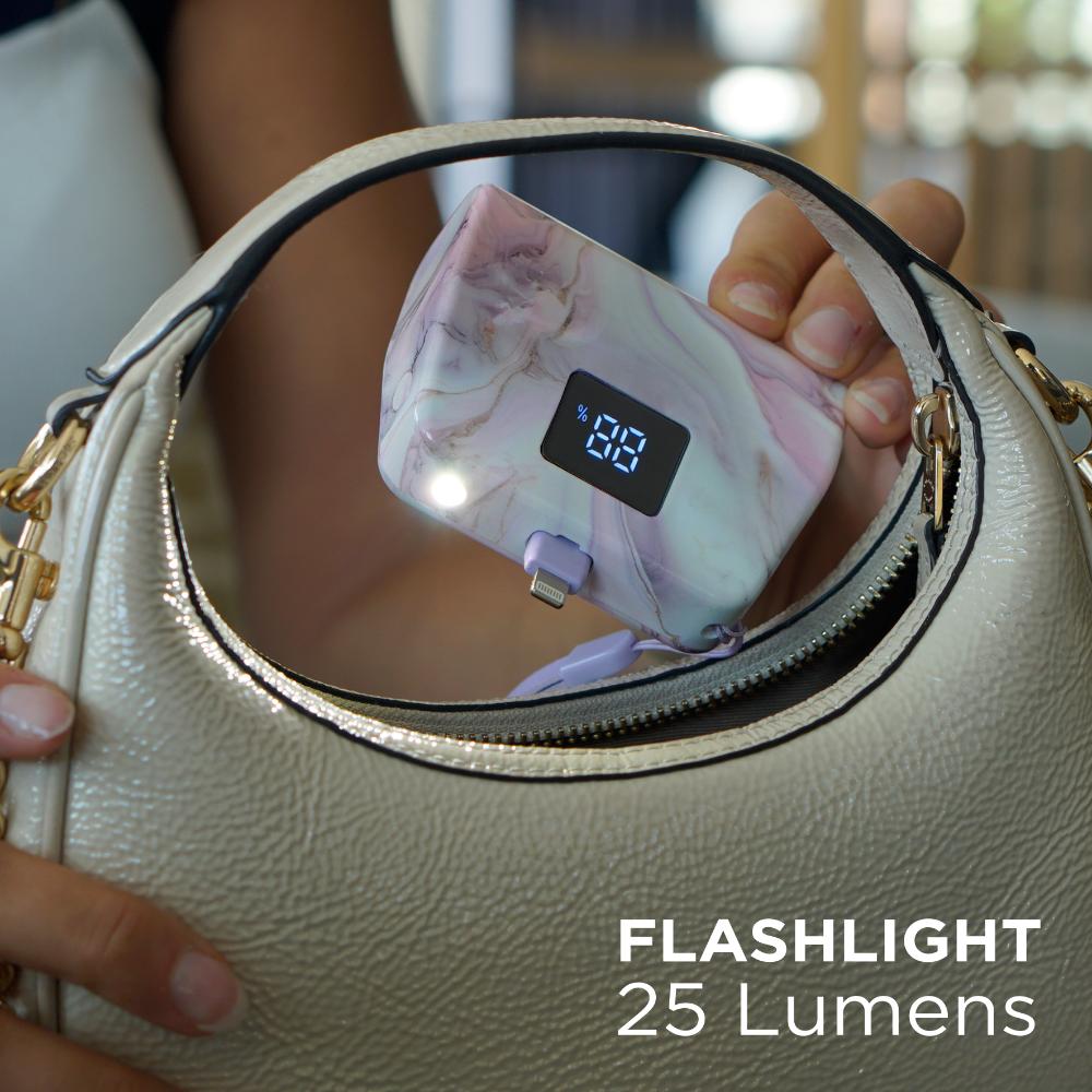 Say goodbye to tangled cords and bulky chargers—with the TotalBoost Mini Pro II, everything you need is built right in. This sleek, ultra-portable power bank keeps you powered up anywhere, anytime—no extra cables required. Equipped with built-in interchangeable charging adapters (Type-C, Lightning, and Micro-USB), the TotalBoost Mini Pro II delivers complete compatibility for virtually any mobile device. The powerful 6,000mAh rechargeable battery provides multiple charges for your phone, earbuds, or other devices, while its cable-free design lets you move freely and charge with ease. Featuring a digital battery display, kickstand with magnetic closure, and mini flashlight, this compact powerhouse combines functionality, portability, and convenience in one smart design. Slip it into your pocket, purse, or travel bag—and stay connected wherever life takes you.