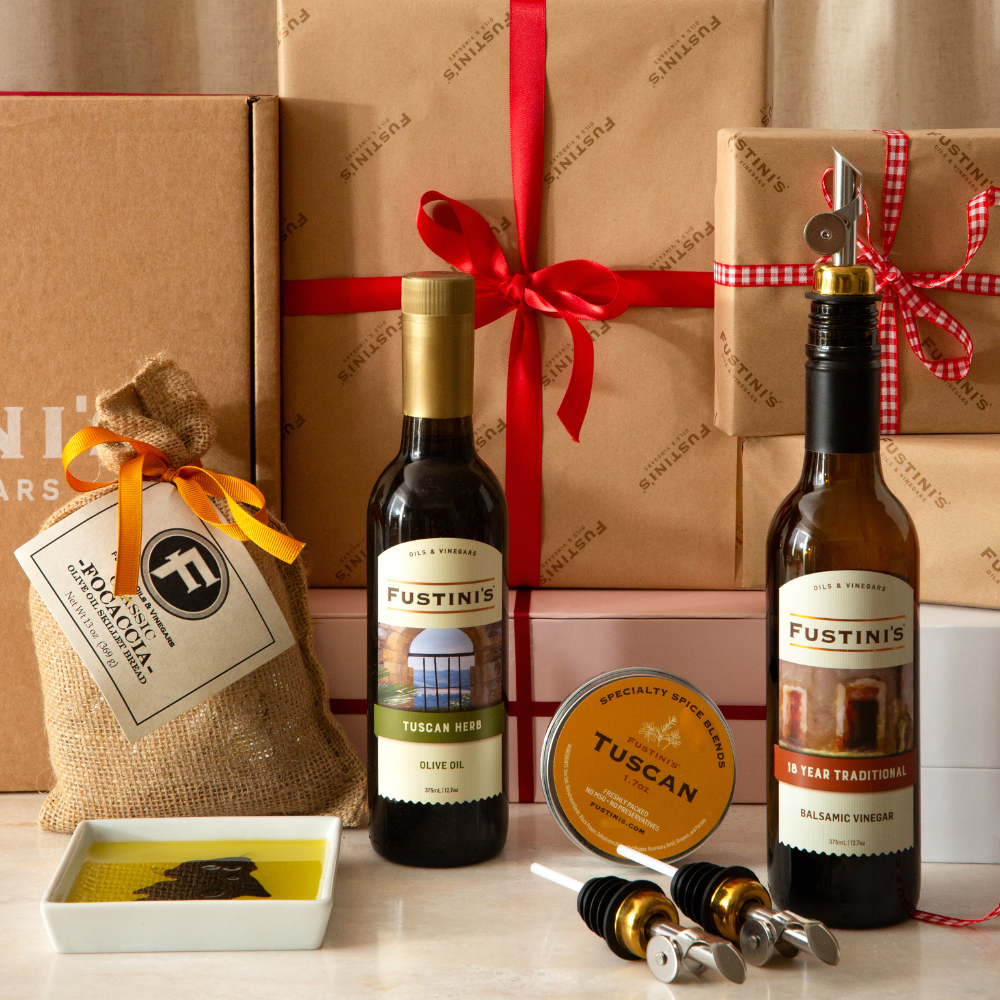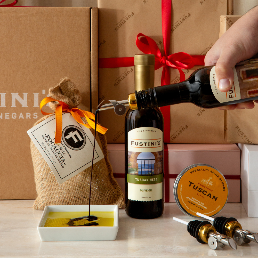 Experience simple luxury with Fustini’s Oils & Vinegars. Each bottle is thoughtfully crafted to inspire wholesome living, elevate moments shared with loved ones, and bring a touch of magic to your holiday gifting.
