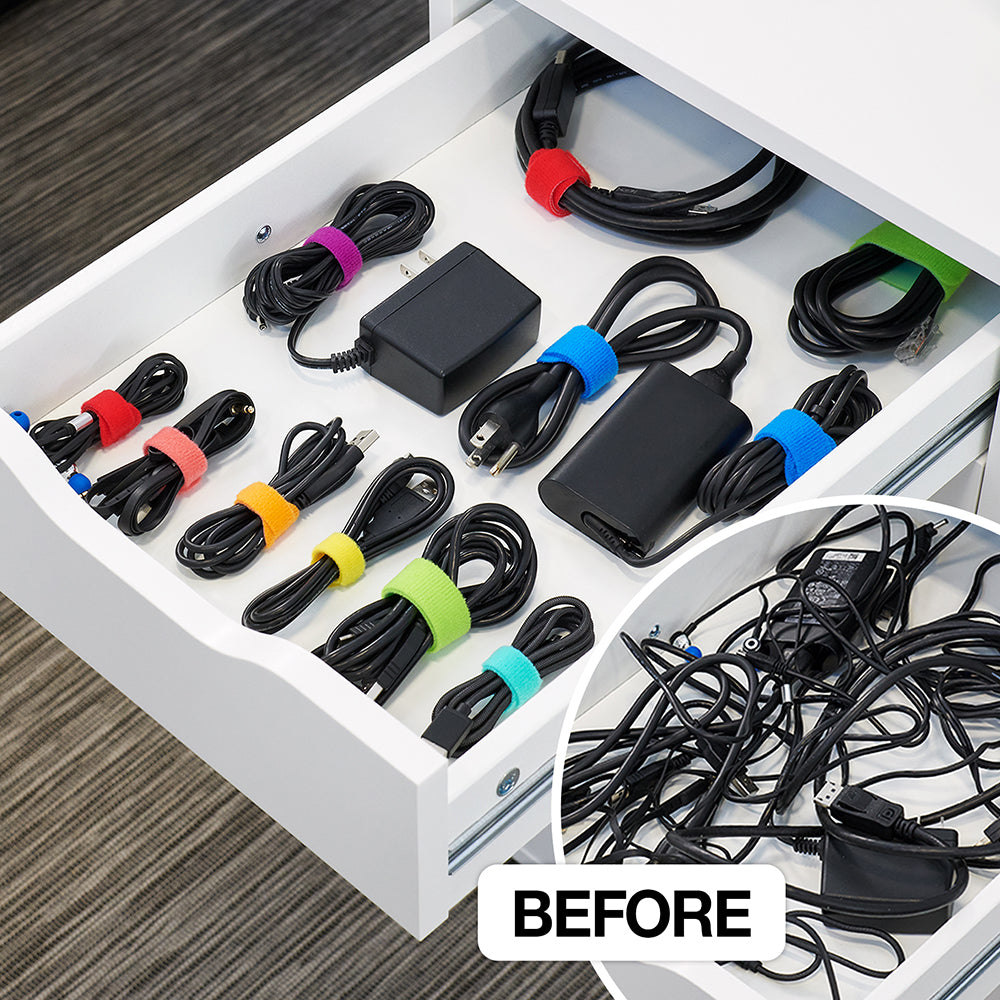 Your home being a tangled mess of cords, wires, and cables can be a thing of the past with the Cable Management Bundle. The hook and loop cable ties can bundle electronic cords and keep your life from looking like Medusa.
