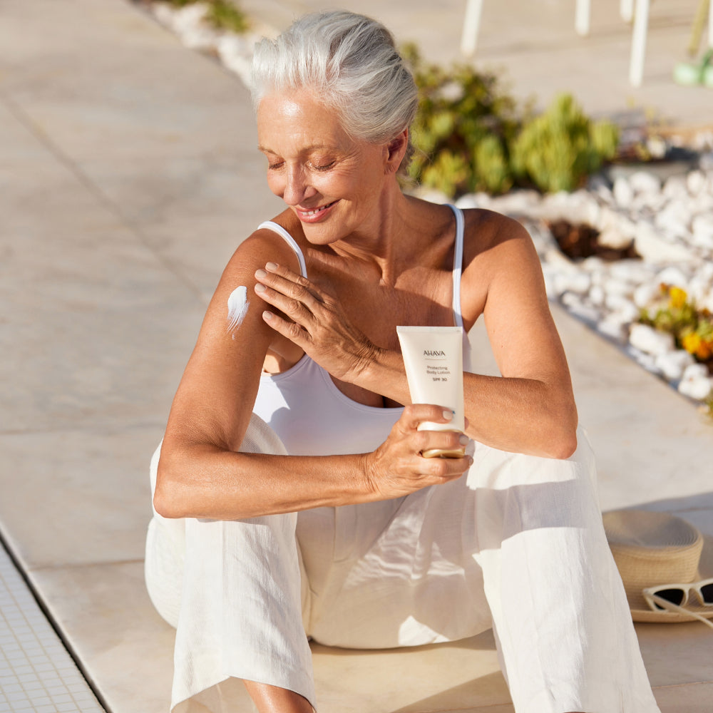 A velvety smooth, multi-benefit hydrating and protecting body lotion formulated to keep your skin supple and safe while out in the sun. Made with Osmoter™, a hydrating Dead Sea mineral composition that elevates skin’s moisture levels from within, together with acai and coffee to help defend skin against early signs of photoaging. Its SPF 30 provides efficient broad-spectrum protection, without leaving any sticky white marks.