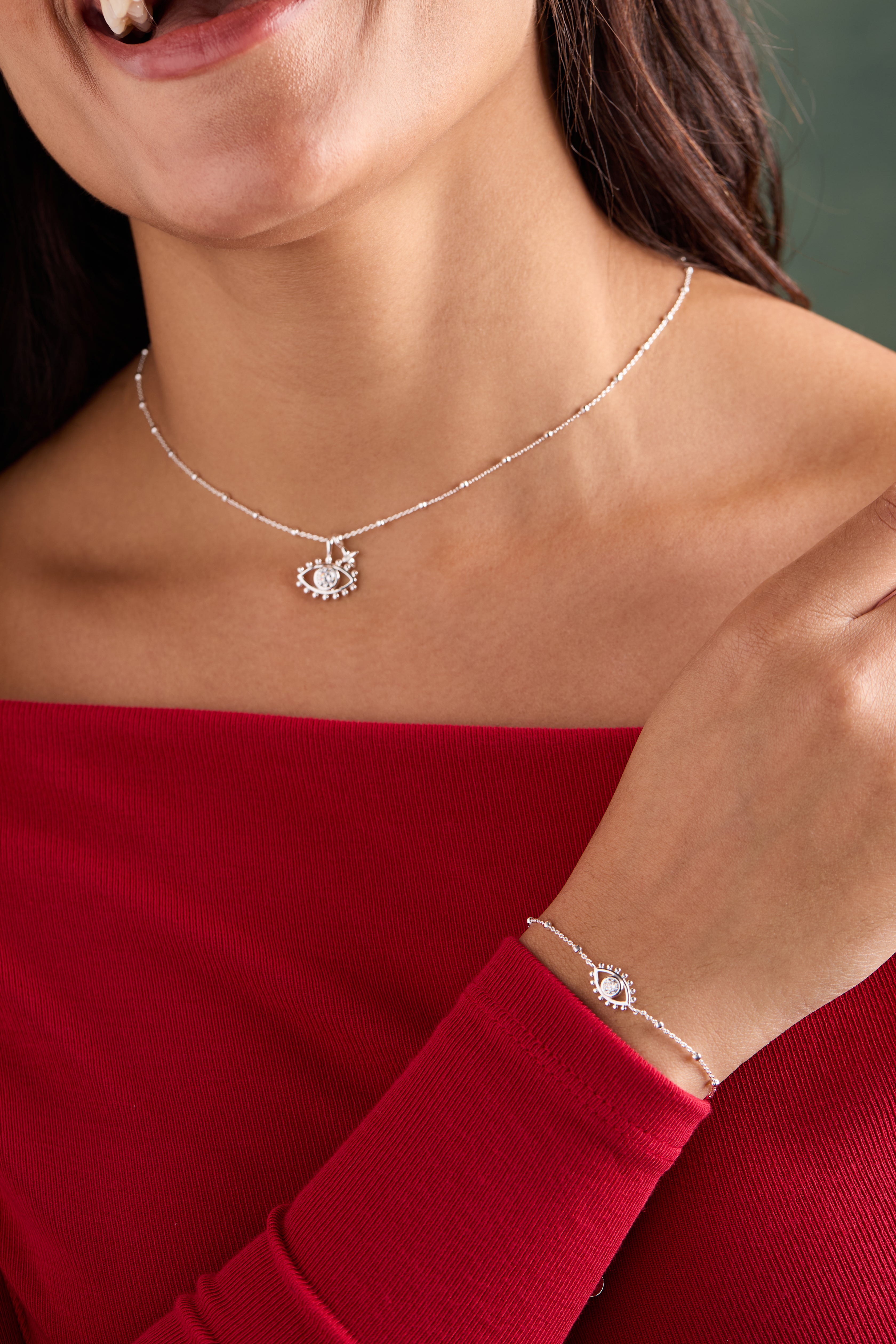 For a matching set, pair this necklace with the Evil Eye Inline Bracelet (sold separately).