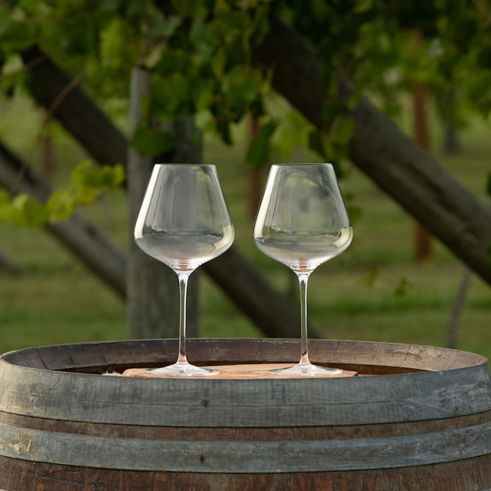 The Balthazar has a broad bowl and specially designed narrow cone. It's shaped to bring out the most from lighter and medium-bodied reds, like pinot noir or Burgundy. With its flatter bottom, it sits comfortably in your hand, and when you swirl your wine, be prepared for the marvelous, concentrated nose that comes forward to greet you.