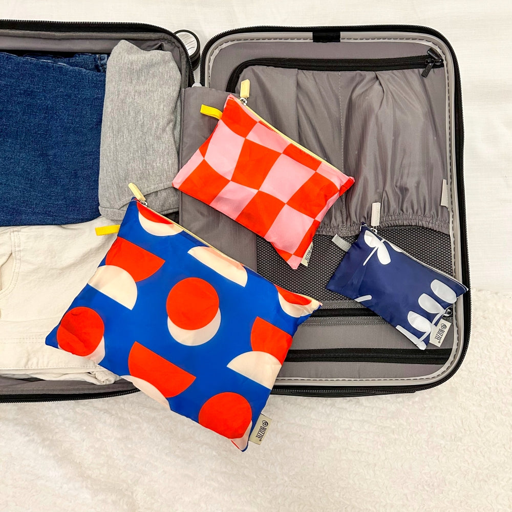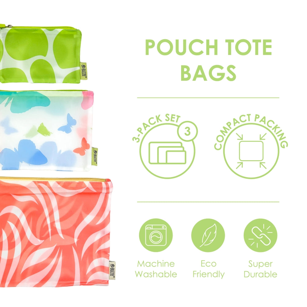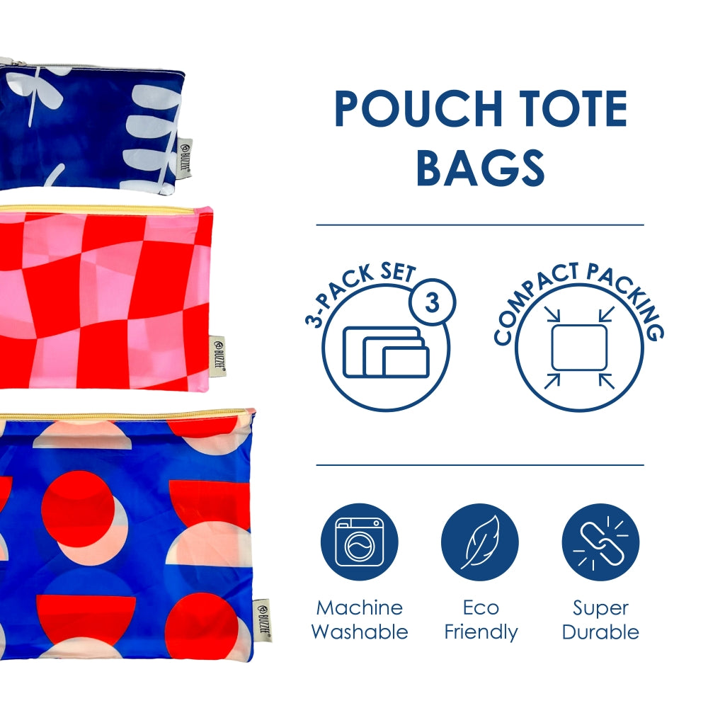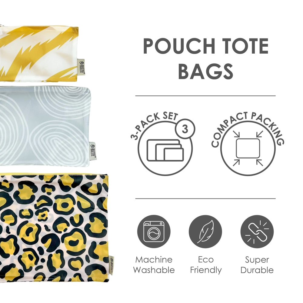 Store and travel in style! This pouch set is ideal for storing and packing everyday essentials for travel and home. Made from durable yet lightweight polyester, these zipper pouches are great for everyday shopping, luggage packing, household storage, and more.