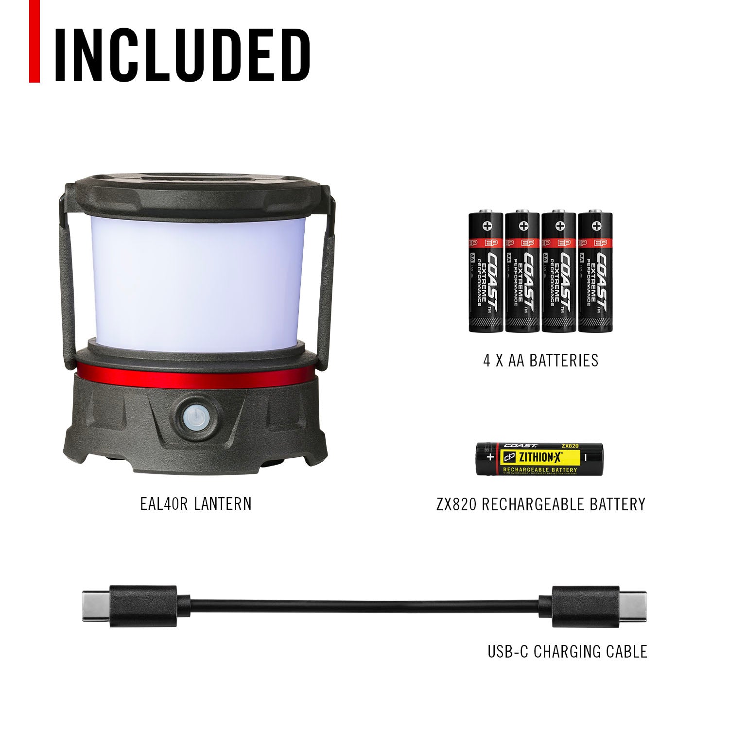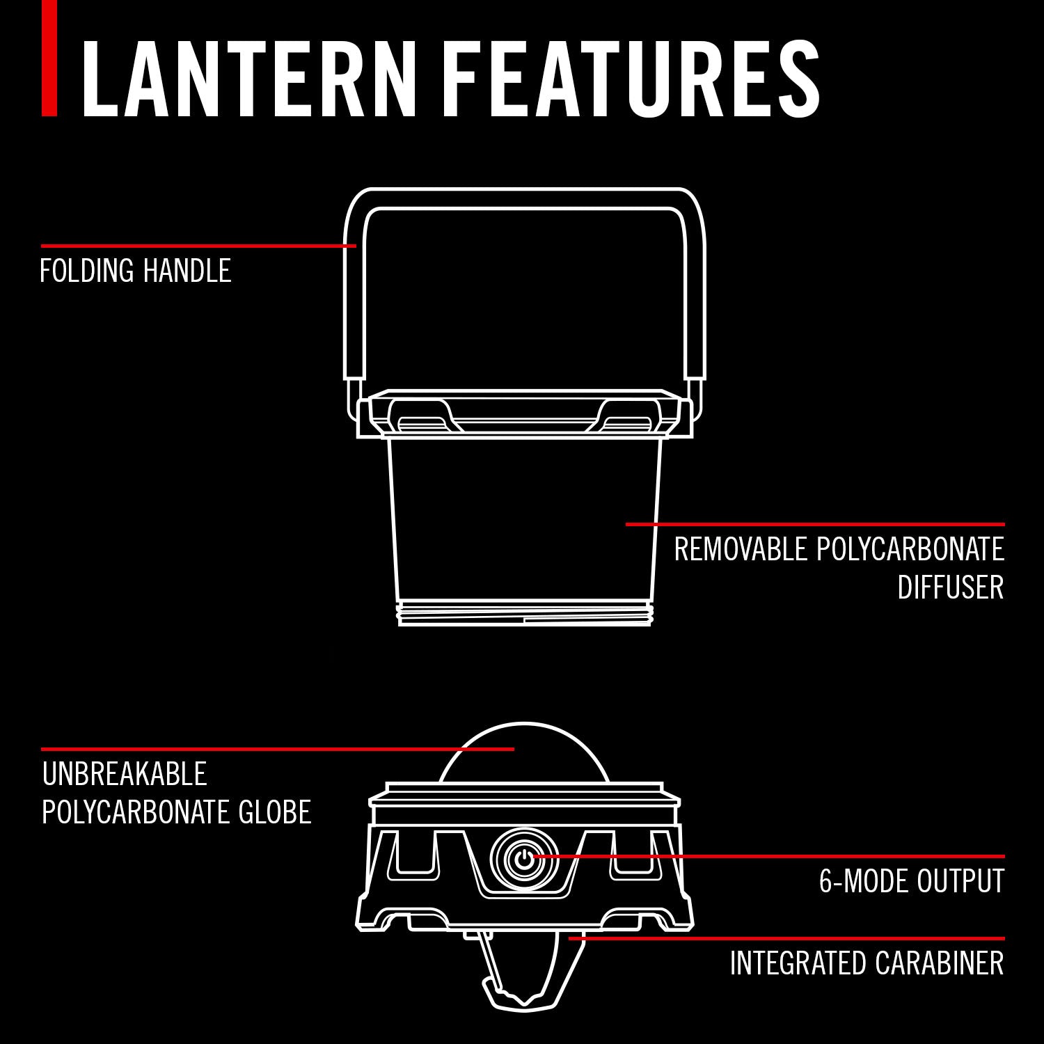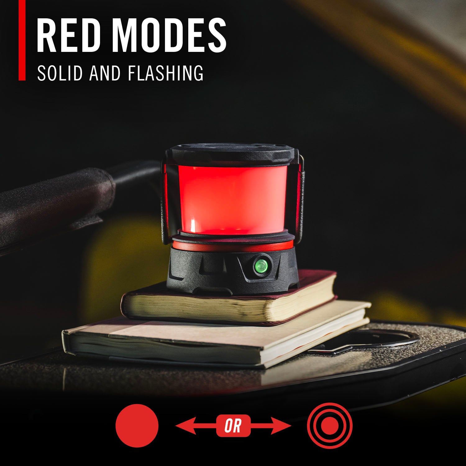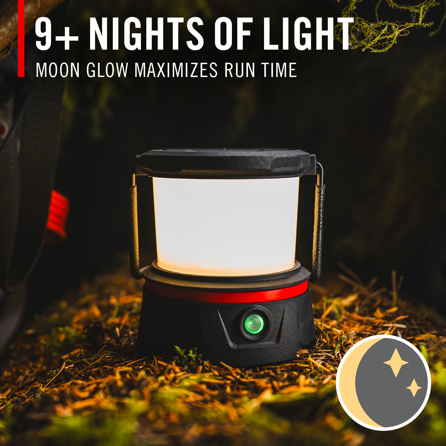 Get big light from a compact lantern. At just over 4” tall, the weight-saving EAL10R rechargeable lantern delivers versatile lighting in a packable format about half the height of a traditional lantern. Room-filling light shines in six modes—MoonGlow™, warm, low, high, red, and red flashing—to give you options, whether you need a 500-lumen flood around the picnic table or a softer, ambient effect in the tent.