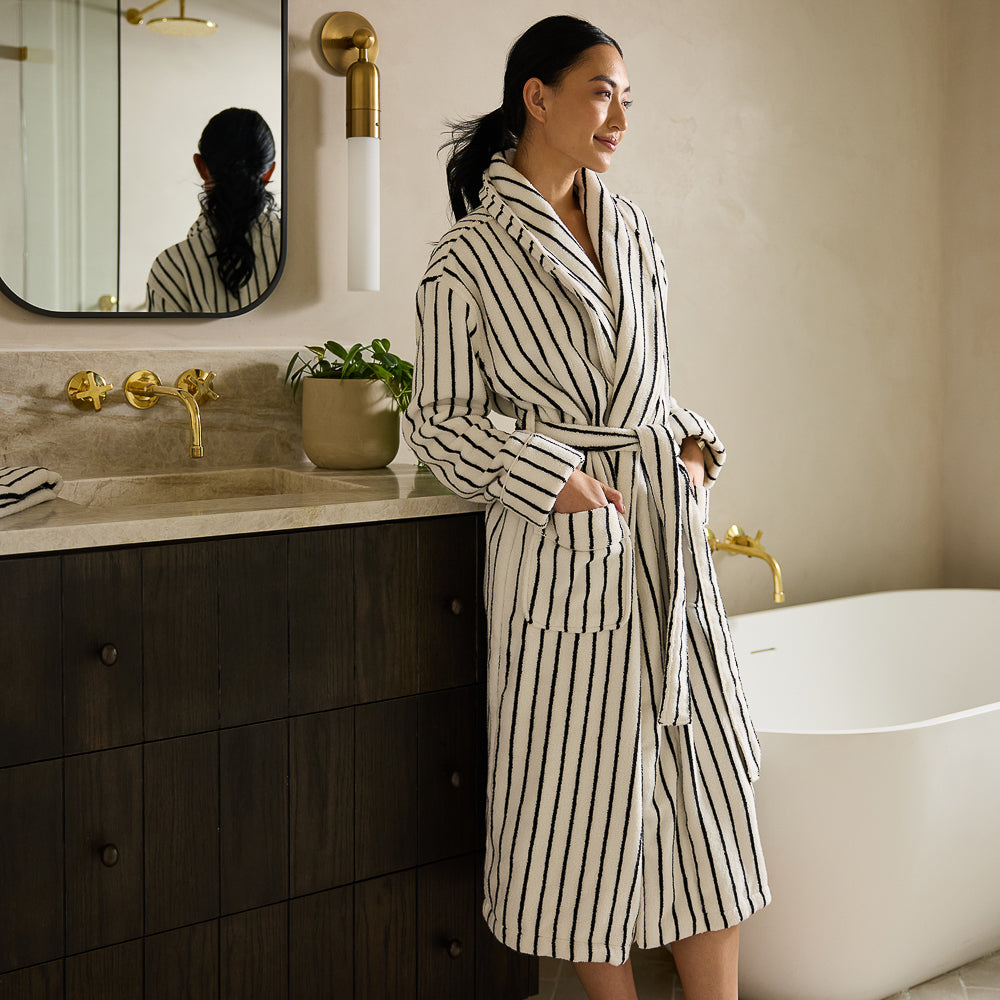 Elevate your post-bath experience with the Luxe Bathrobe, the epitome of comfort and sophistication. Crafted from a luxurious blend of cotton and bamboo viscose using cutting-edge Zero Twist technology, this robe envelops you in unmatched softness and indulgence.