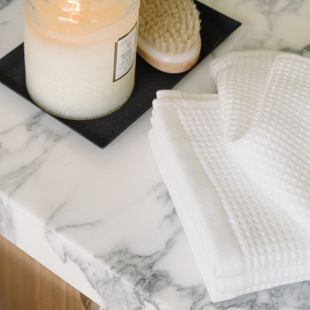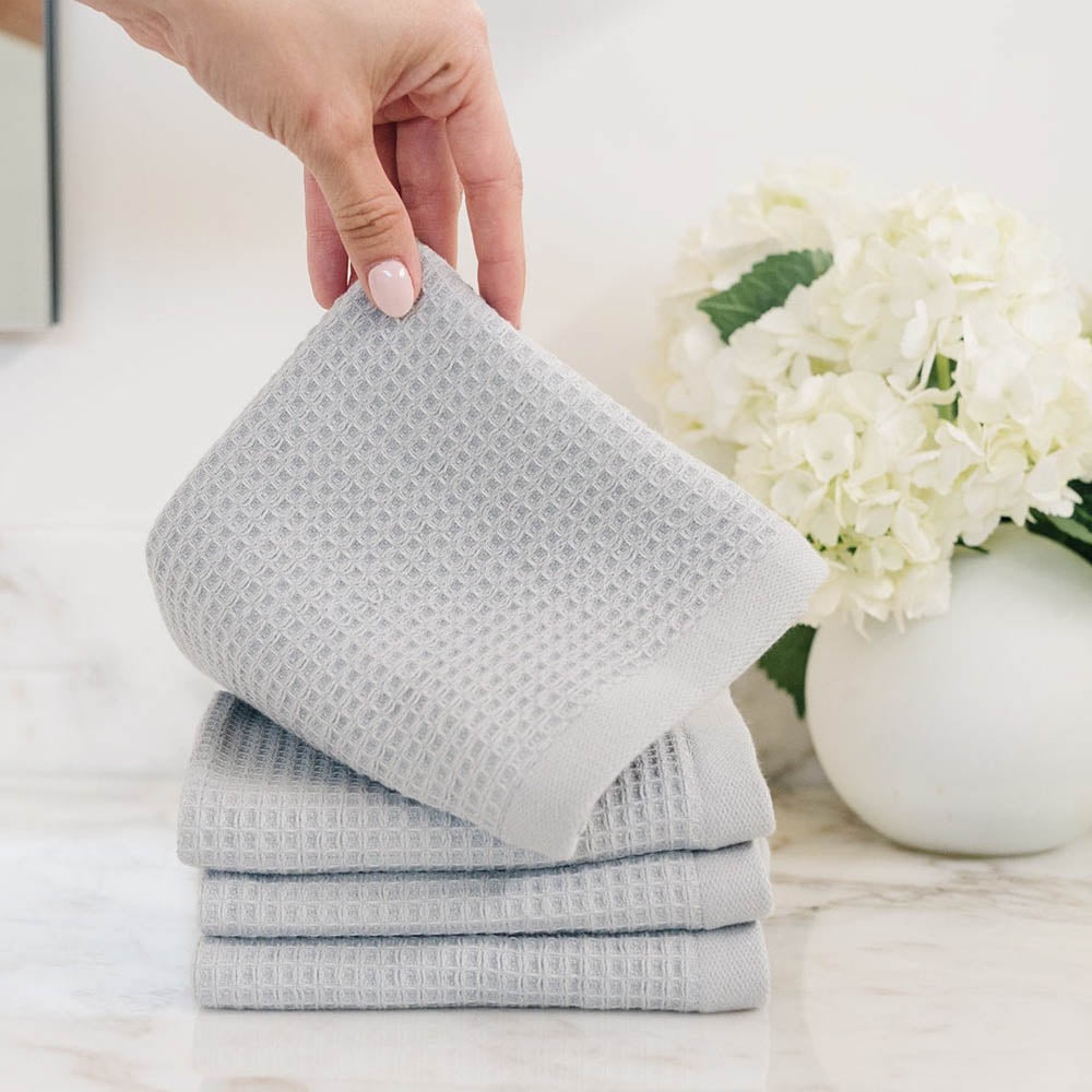 A beautiful balance of mini waffle weave and plush yet absorbent ribbed terry come together in these dual-sided washcloths. Soft and stylish, they feel luxurious on your skin and look even better in your bathroom. Use the terry side to dry, and display the waffle side to add a touch of texture to any space.