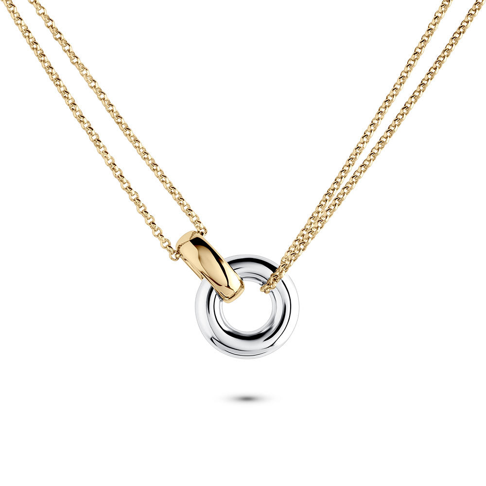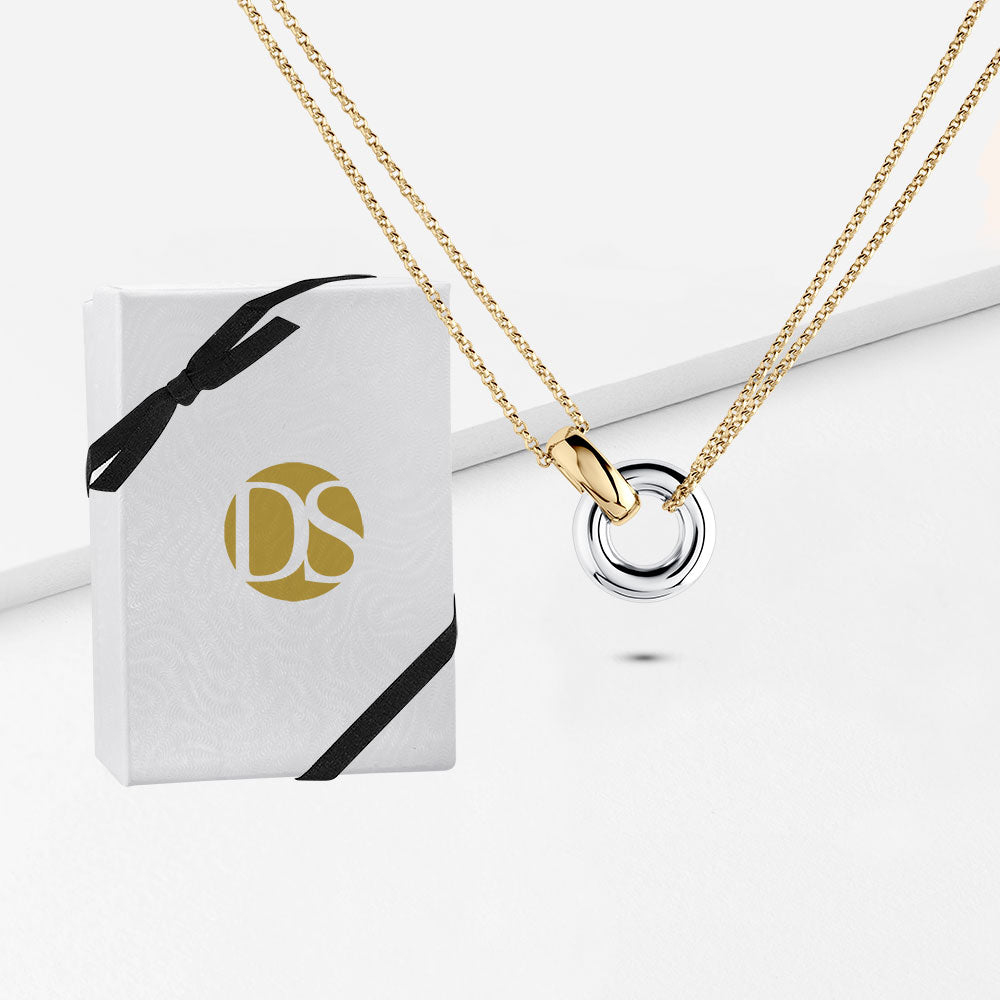 This exquisite piece showcases a harmonious blend of classic and contemporary design, ideal for adding a touch of sophistication to any look. It features two interlocking circles, each rendered in a sleek, high-polished finish. The interlocking design symbolizes unity and timeless elegance, making it a meaningful addition to your jewelry collection.