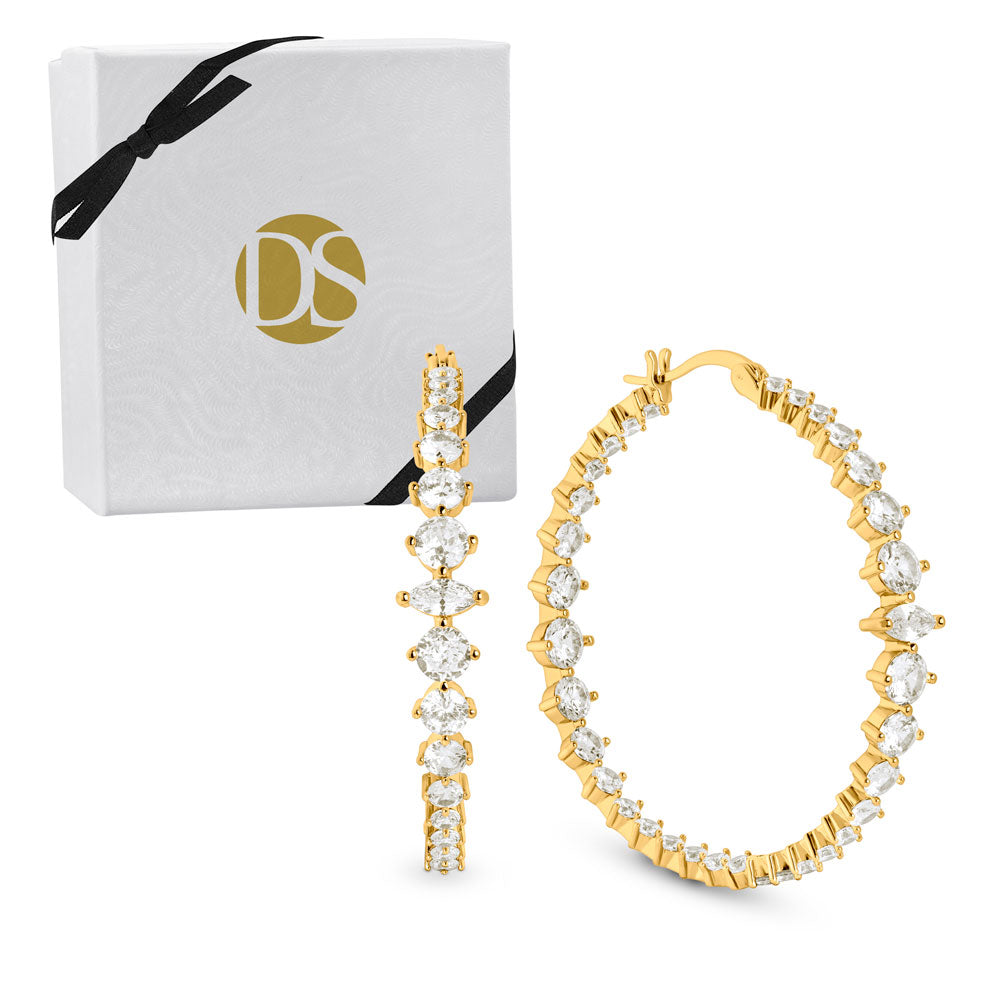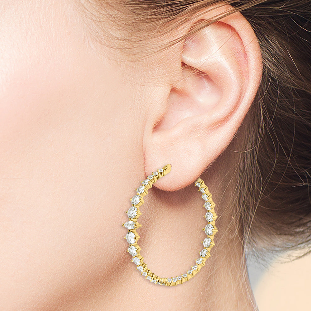 Infuse your look with captivating style with this inside-outside design that radiates brilliance from every angle. Featuring a combination of round and marquise-cut stones, these earrings elevate both your daytime and evening ensembles with exceptional flair.