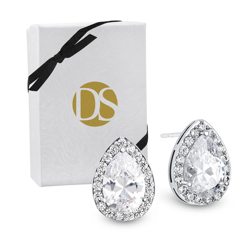 Introducing the Sydney Earrings, a stunning accessory that effortlessly combines sophistication with a touch of glamour. The prong-set, pear-cut stone takes center stage, adding an element of timeless elegance to the overall design.