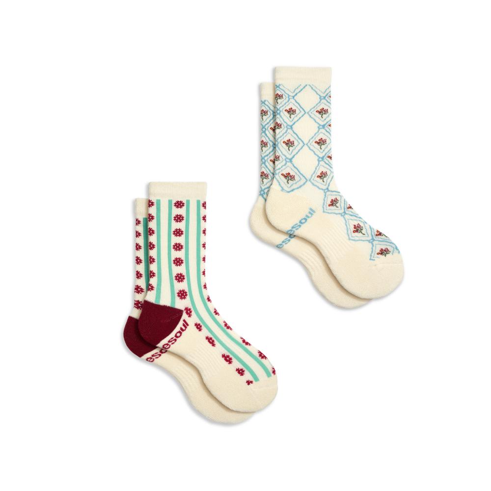 The Assorted Pattern High Socks feature two nostalgic pairs: the Striped Wallpaper and Floral Wallpaper High Socks. Crafted from a buttery blend of organic cotton and recycled nylon, these everyday socks hit midway up the calf and are super soft on the skin and environment.