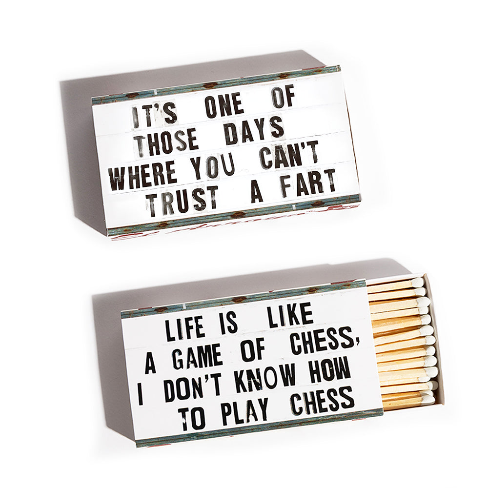 Matches are a necessity—why not make them a cute one? Display these mini marquees on a coffee table, bathroom counter, or kitchen table!